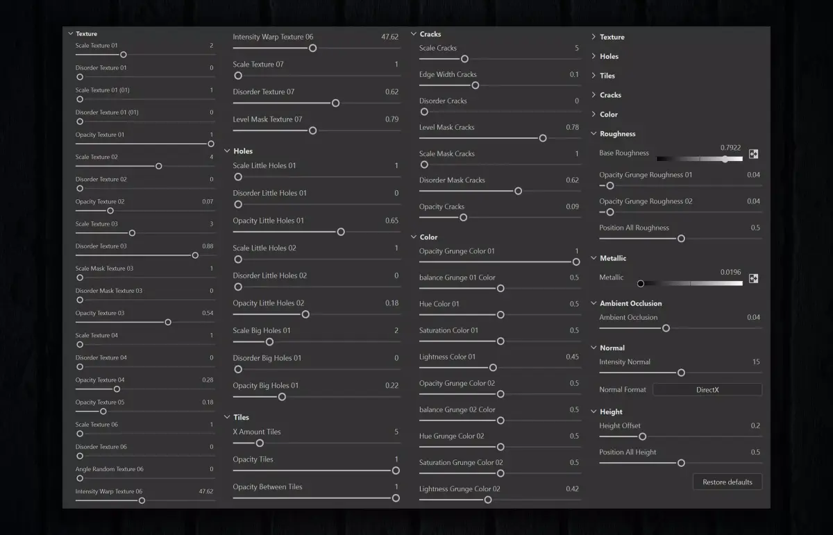 With the ability to change all settings and parameters in the SBsar file With excellent ability to change all kinds of settings in the Sbsar file:Because there were many parameters that can be changed, all the parameters are placed in the photo