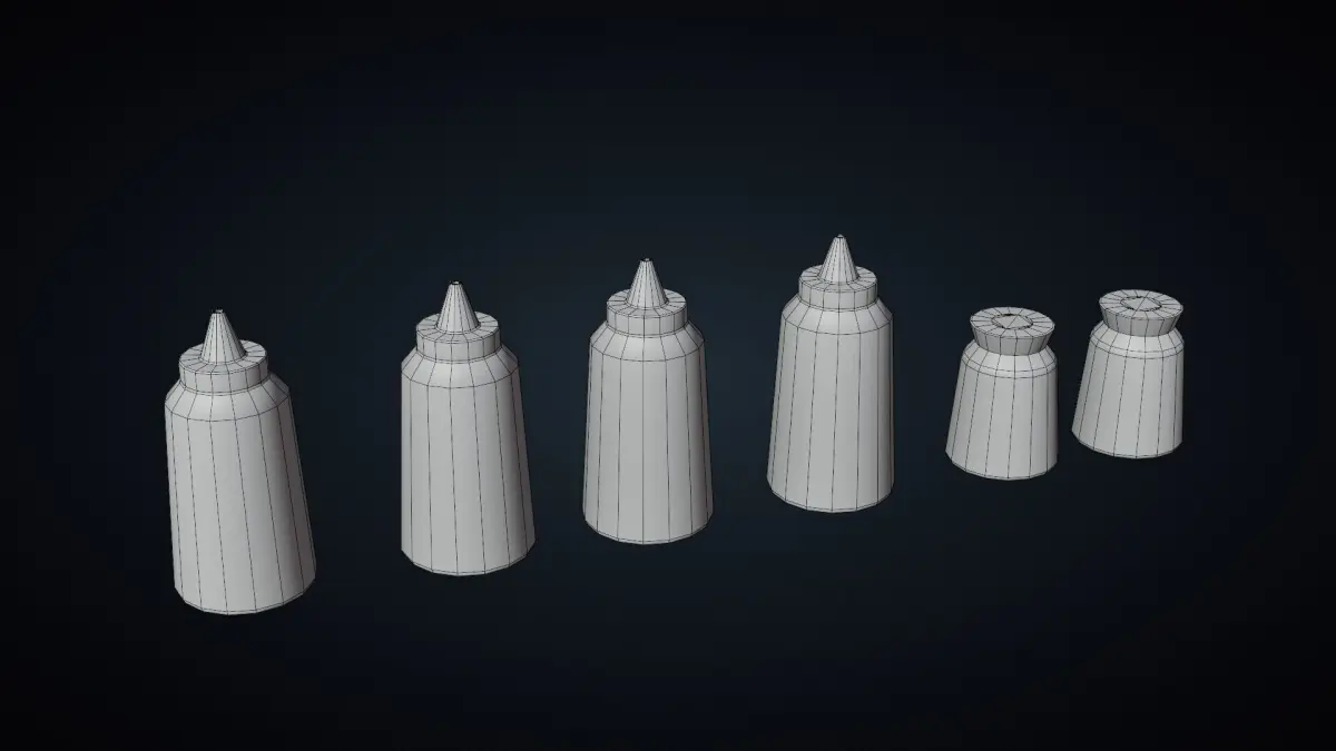 This is the part 2 of my Stylized Kitchen Pack, featuring condiments, ketchup, mustard, chilli, mayo, salt and pepper.