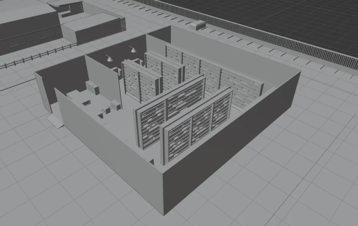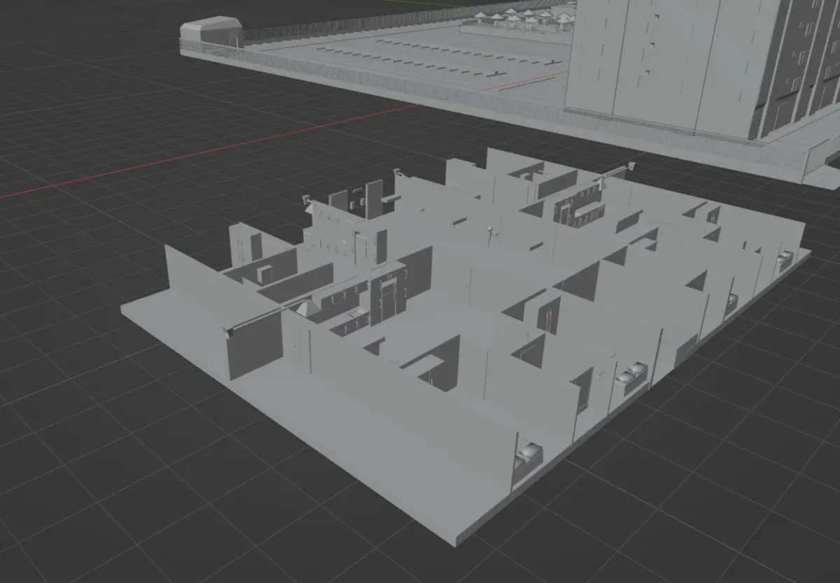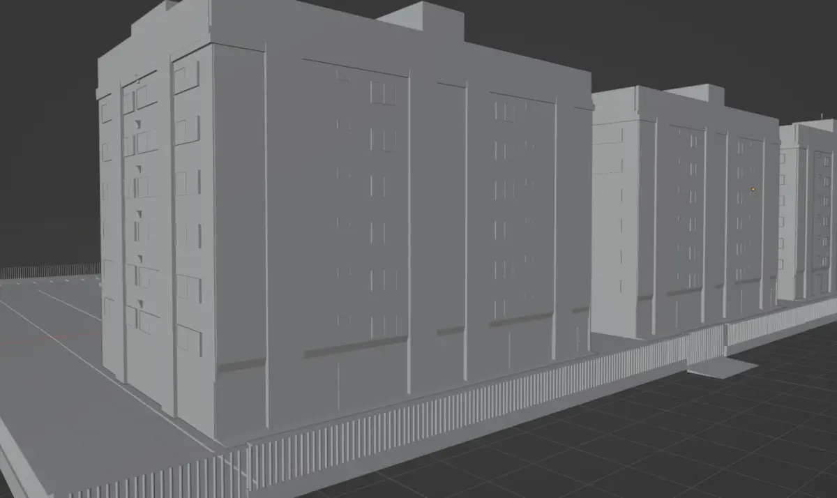 Uma maquete de um condomínio pensado para habitação popular. Cada um dos 4 prédios apresenta 6 andares, cada um deles com 2 kitnets e 2 apartamentos de 2 qartos pouca mobília. Cada alojamento possui cozinha, quarto, banheiro, área externa e área de jantar integrada com a sala de estar. Os andares tabmém possuem lixeira coletiva, acesso a escada, elevadores e sistemas de incêndio. O condomínio conta com uma área de lazer cm piscina e mesas com guarda-sol, biblioteca aberta a todas e uma creche gratuita para as pessoas que precisam ir trabalhar e precisam de amparo para a suas crianças, além de um amplo estacionamento com vagas decobertas e caminhos para pedestres. Todos cercado por um muro com grade, o local possui uma guarita na portaria que fica na entrada do local com portão elétrico pensado para acessibilidade.