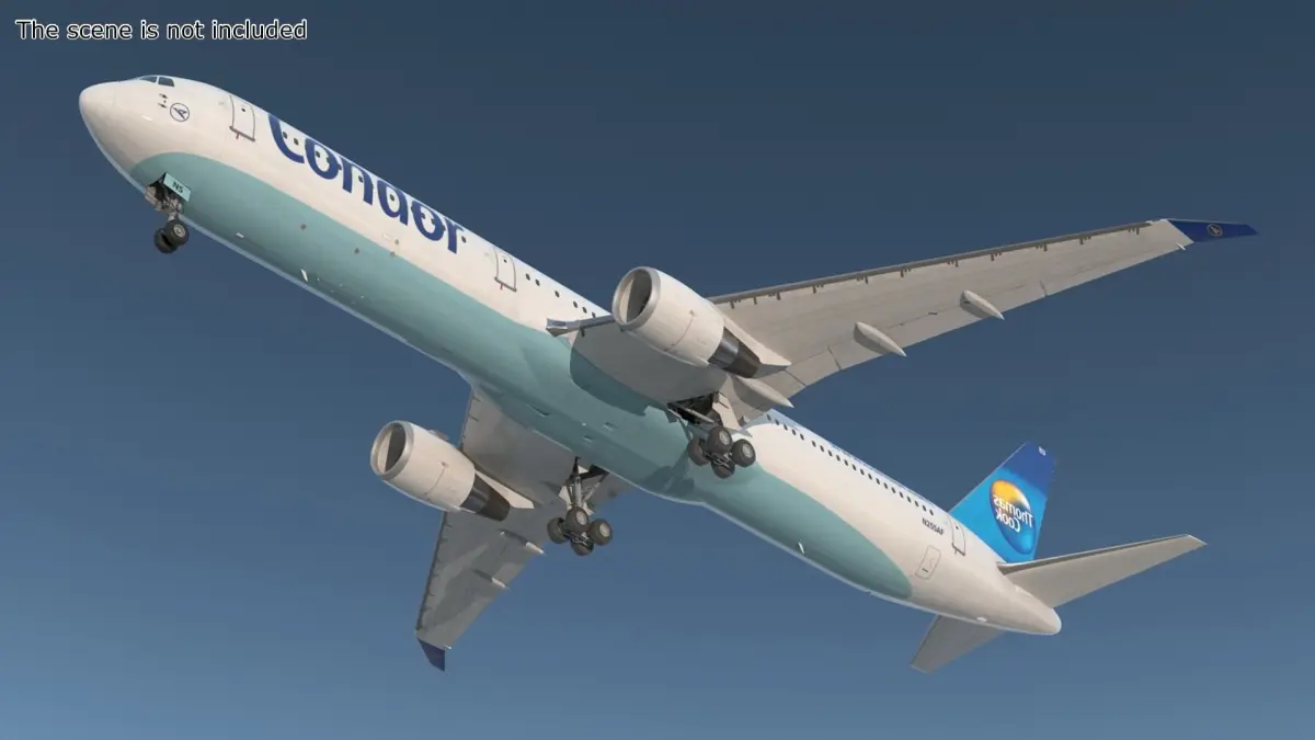 Condor Flugdienst Boeing 767-400 with Cabin and Doors Rigged for Maya is a three-dimensional model of an airplane featuring both an external view and detailed interior seating.