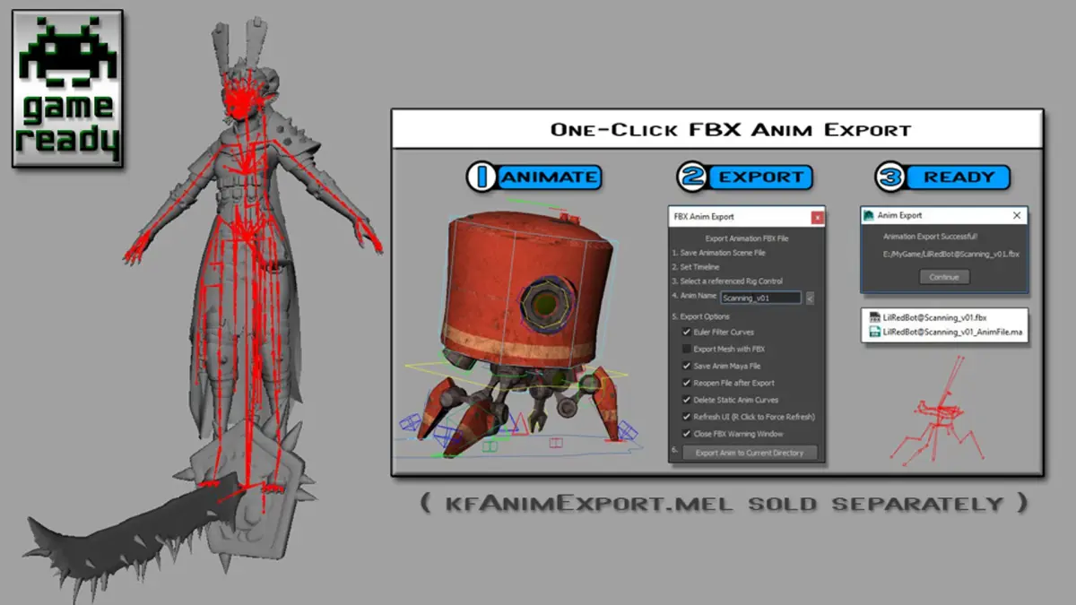 -Easy export to FBX sold separately (search for kfAnimExport.mel)