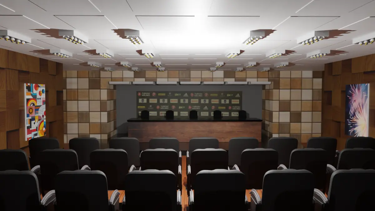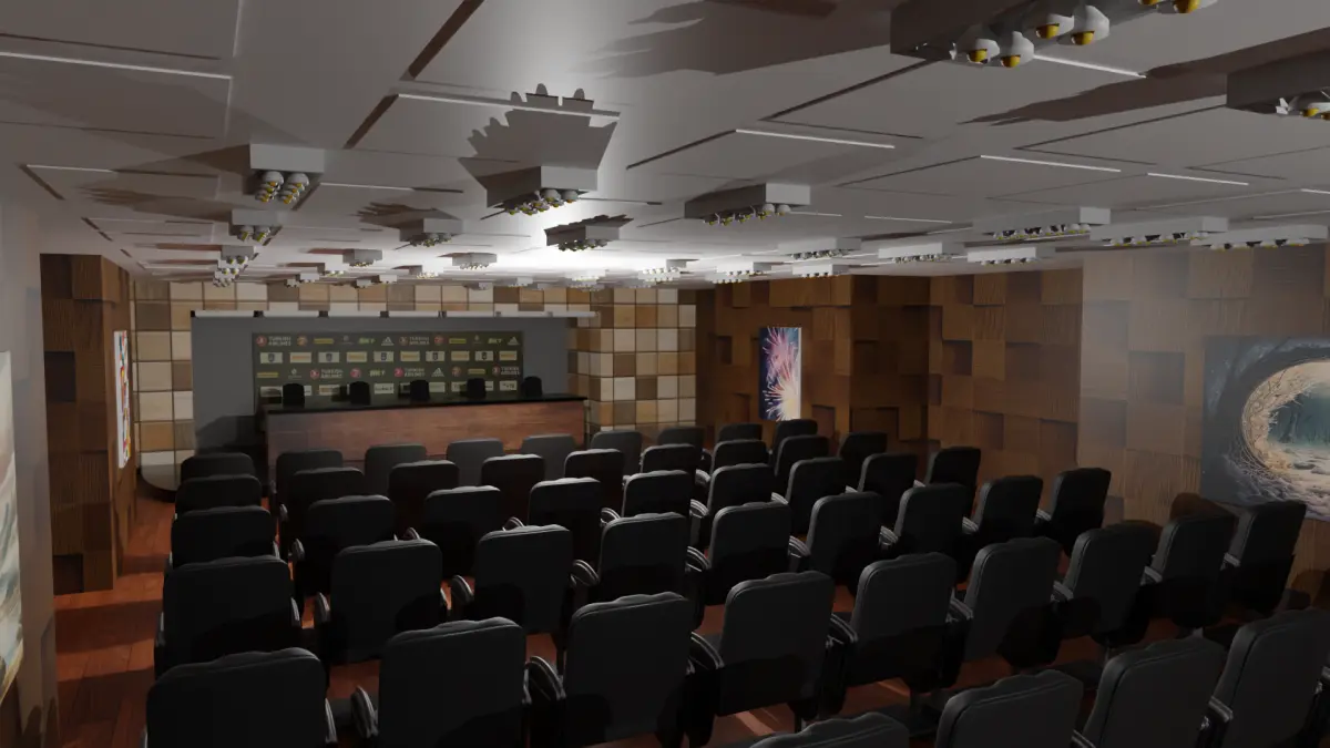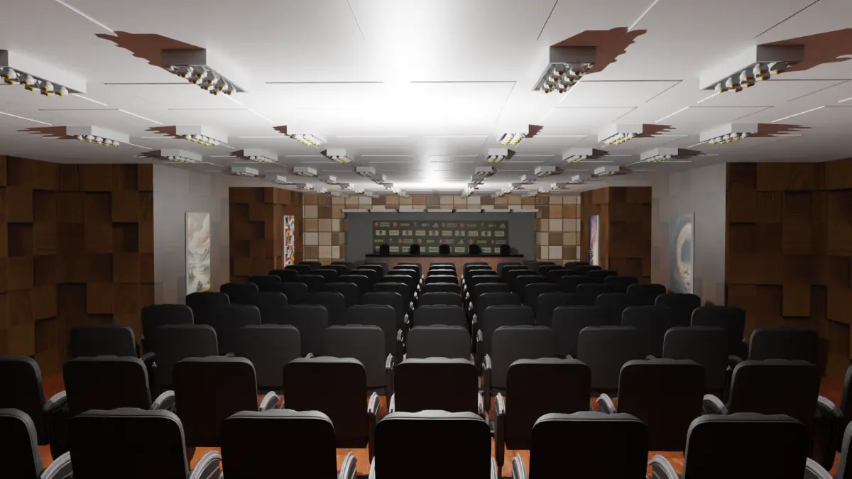 Conference Hall. Blender, Fbx, Obj, Stl and Gltf file are available. It is designed to be used in every field, including games. Textures are embedded in fbx. Textures are also embedded in Blender and Gltf files.