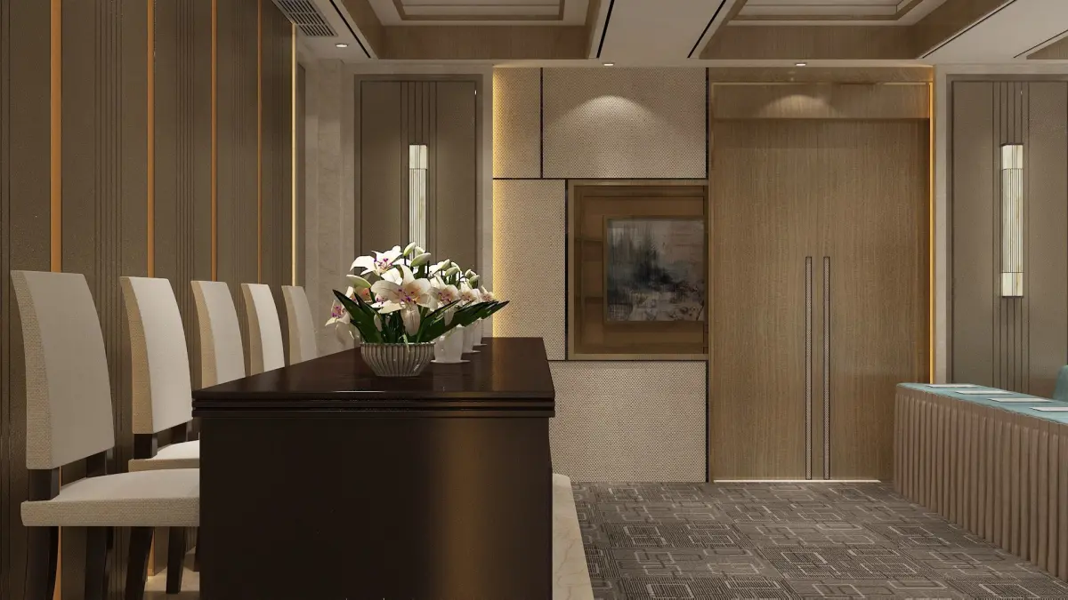 Conference room with related furniture and decoration.Room size: 10 000 x 7 500 mm.