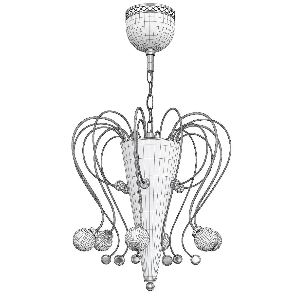 Name: CONIC_CRYSTAL_CHANDELIERVersion: 2013Units: MillimetersDimension: 531.22 x 533.35 x 910.21Polys: 47 238...turbosmoth 1 iteration _ 190 238Model Parts: 1Render: V-RayFormats: 3Ds Max 2013, OBJ