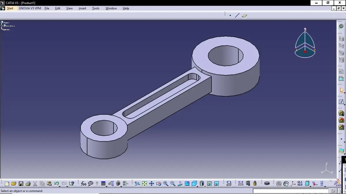 A connecting rod is the part of a piston engine which connects the piston to the crankshaft. Together with the crank, the connecting rod converts the reciprocating motion of the piston into the rotation of the crankshaft.The connecting rod is required to transmit the compressive and tensile forces from the piston. In its most common form, in an internal combustion engine, it allows pivoting on the piston end and rotation on the shaft end.The predecessor to the connecting rod is a mechanic linkage used by water mills to convert rotating motion of the water wheel into reciprocating motion.FILE FORMAT .CATPart.igs.CATPART( 2d drawing)