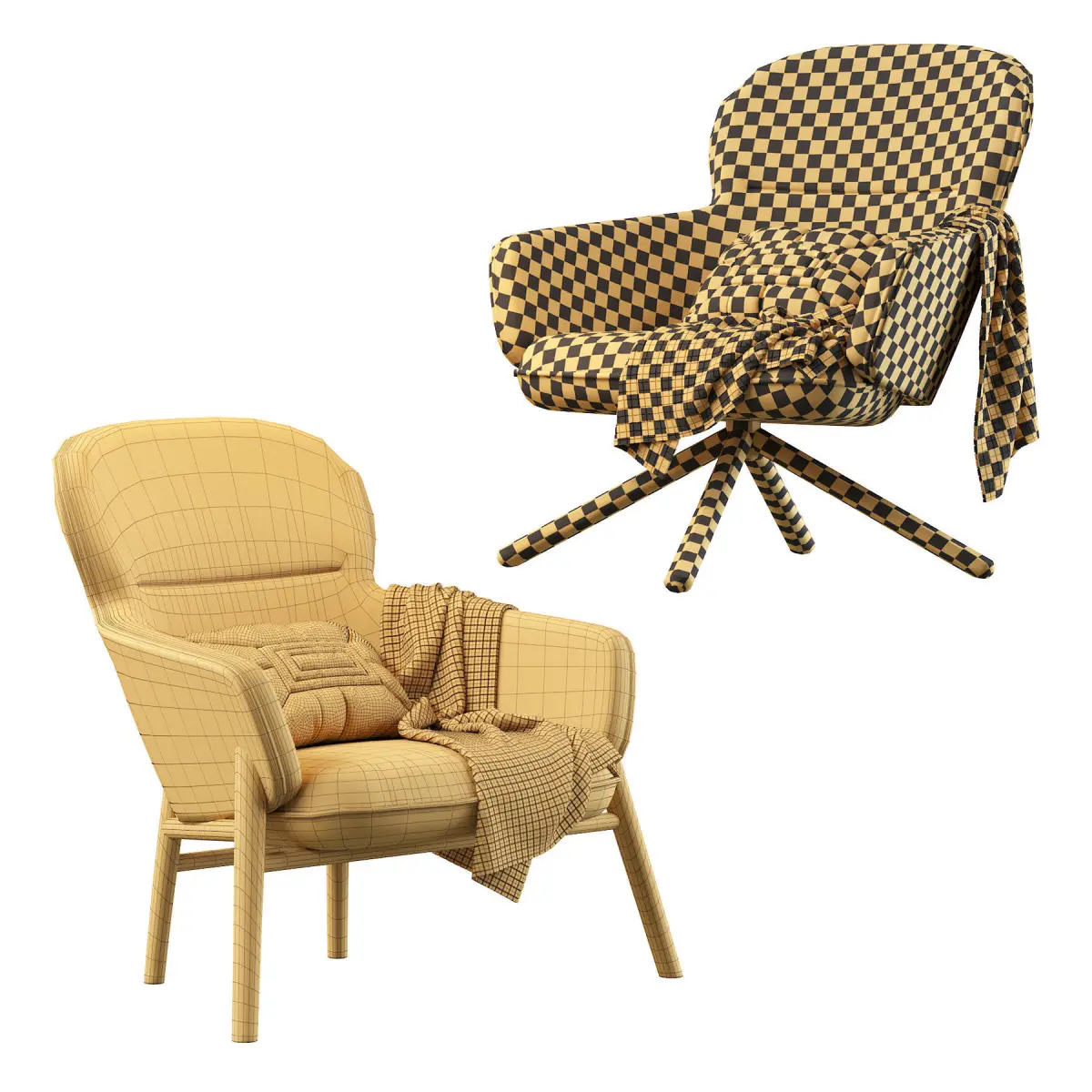 A chair is a type of seat, typically designed for one person and consisting of one or more legs, a flat or slightly angled seat and a back-rest. It may be made of wood, metal, or synthetic materials, and may be padded or upholstered in various colors and fabrics.