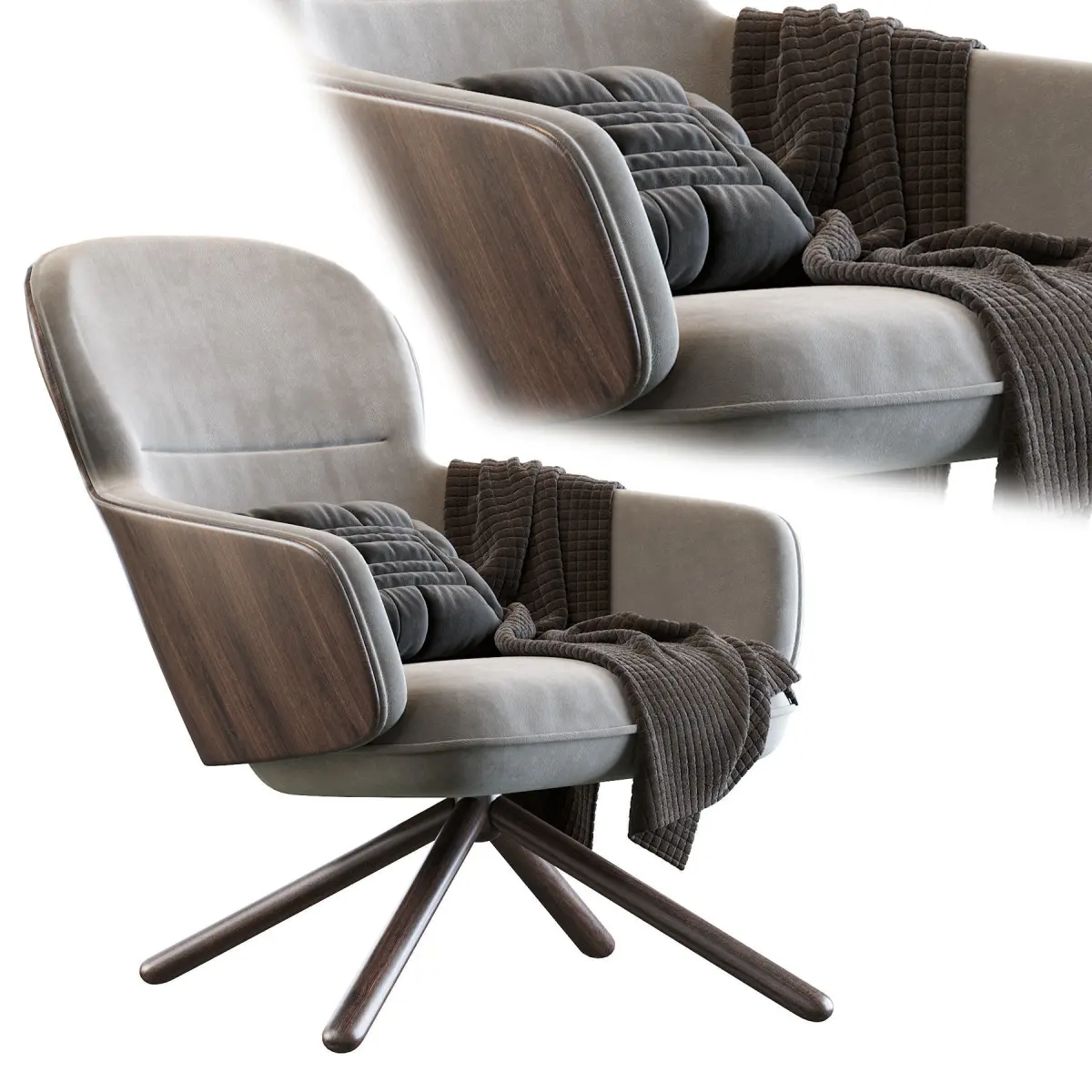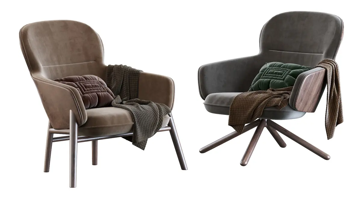 Chairs vary in design. An armchair has armrests fixed to the seat;[1] a recliner is upholstered and features a mechanism that lowers the chair's back and raises into place a footrest;[2] a rocking chair has legs fixed to two long curved slats; and a wheelchair has wheels fixed to an axis under the seat.