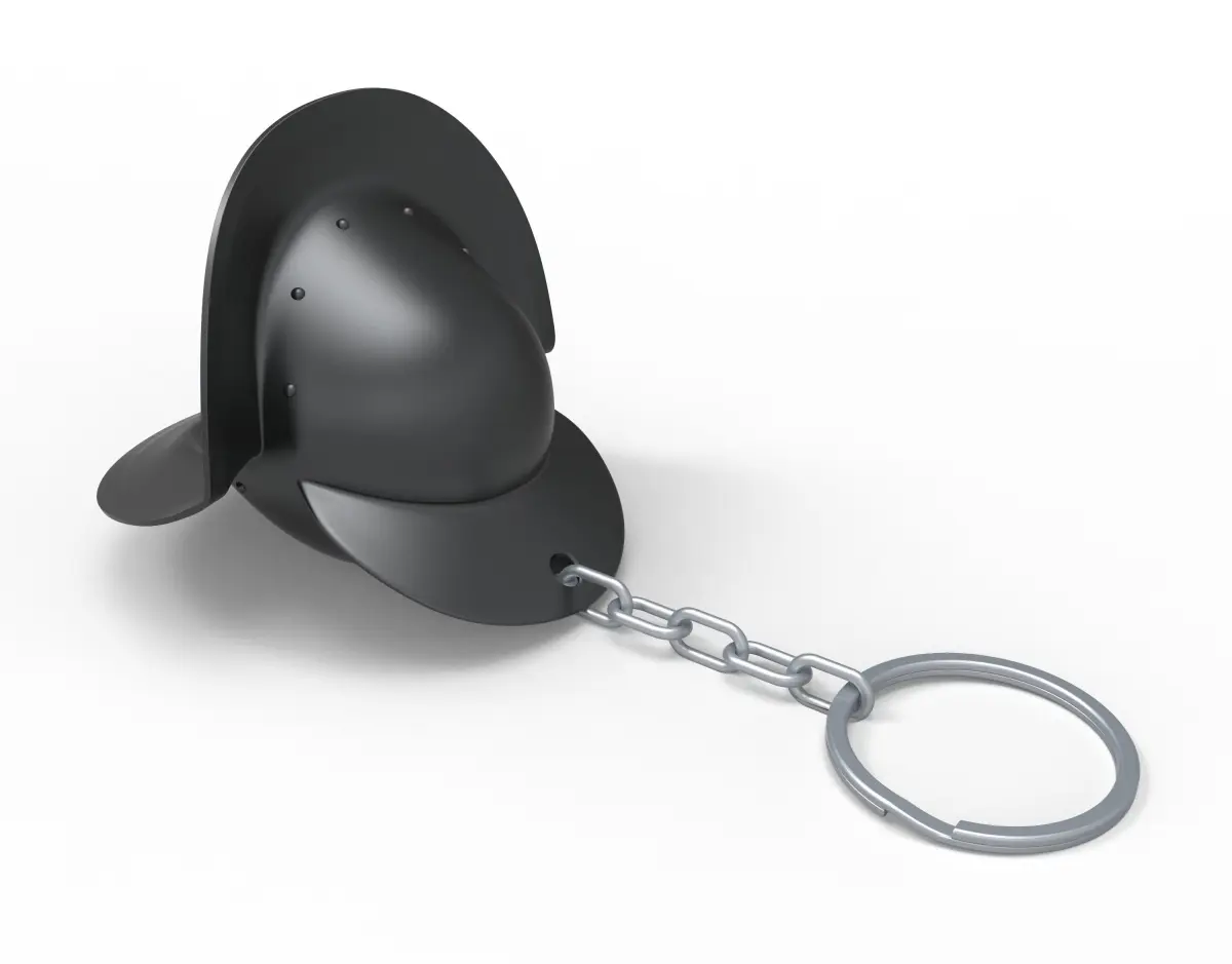 Conquistador helmet keychain. It's small version of Morion hemet -Solidworks (SLDPRT) model was exported in other CAD formats:(X_T, IGES, STEP, OBJ and STL). This 3D model can used in producing on CNC machines and for 3D printing.