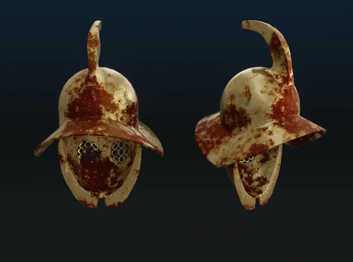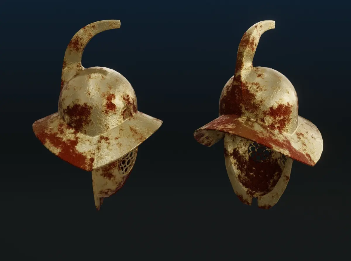 Low poly 3d model of Conquistador Rusted Helmet, made in blender 4.0 with PBR textures in 2k and 4k