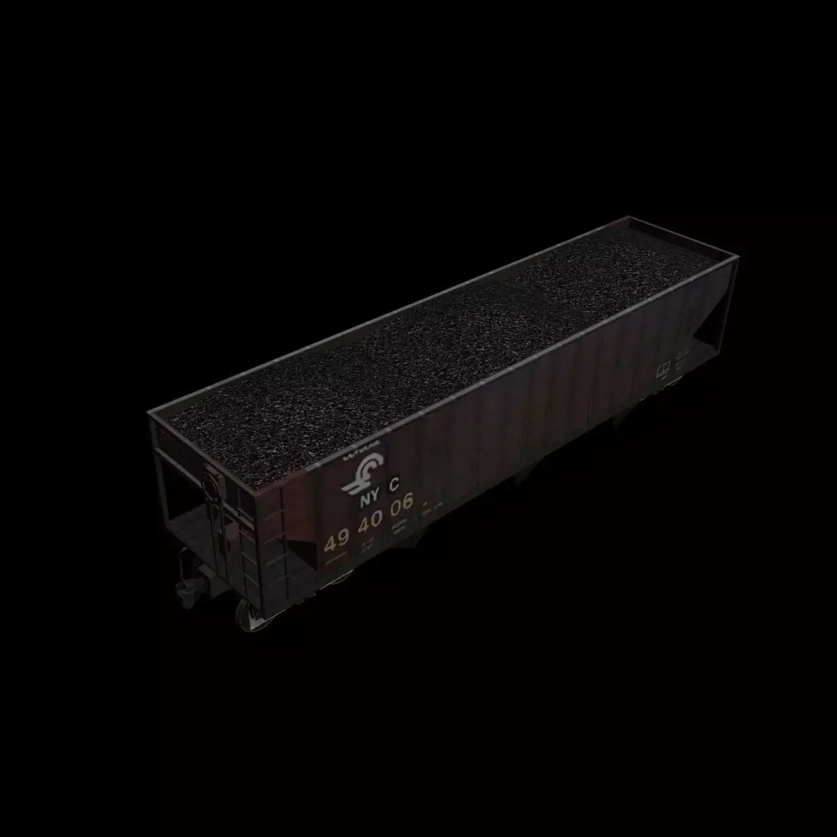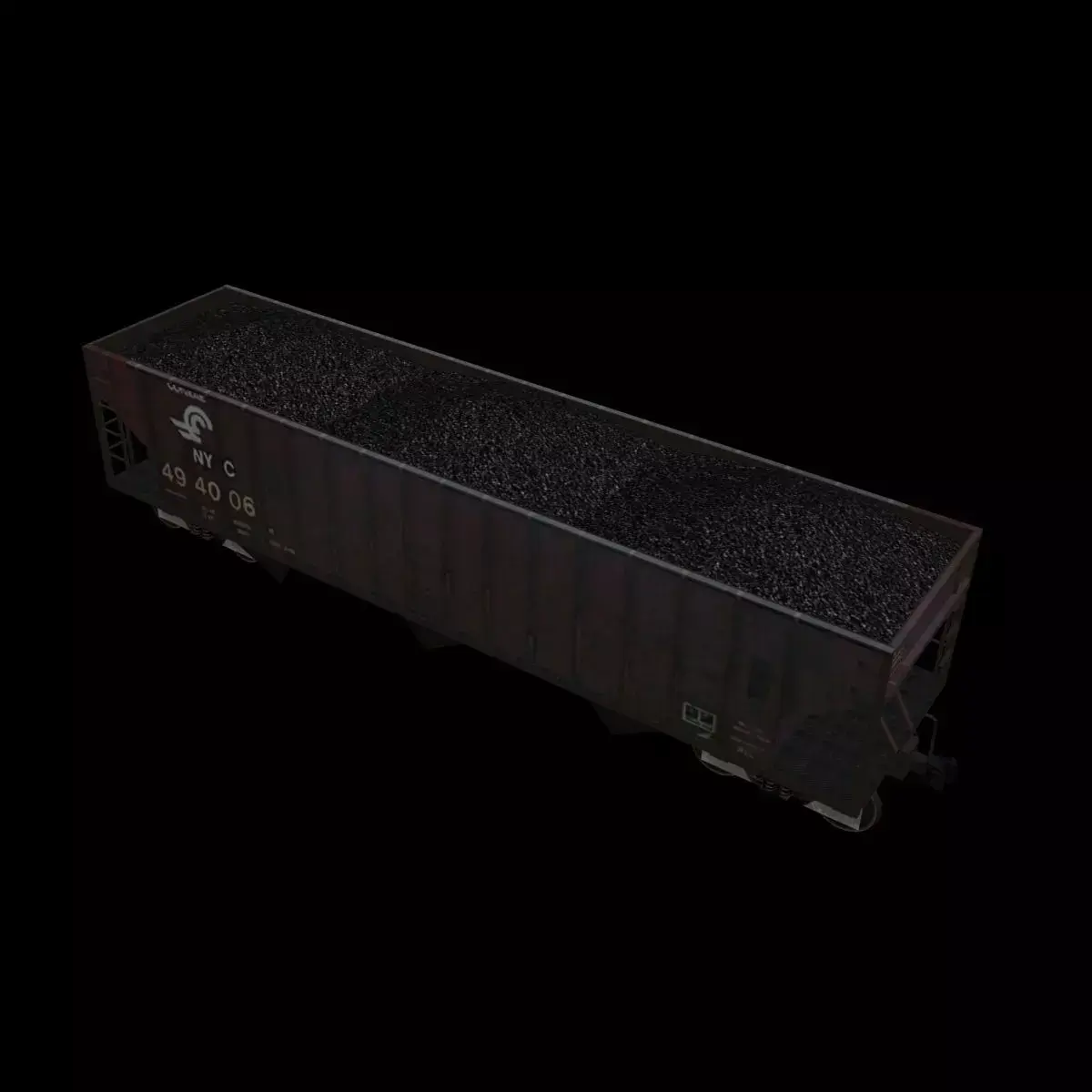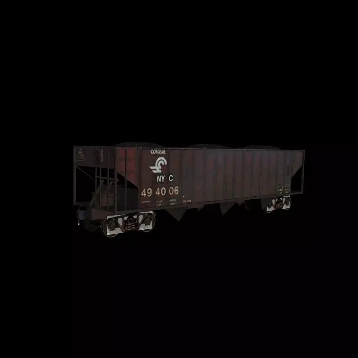 Model of a hopper freight car with a load of coal in Conrail/NYC livery.
