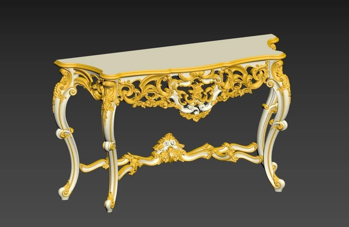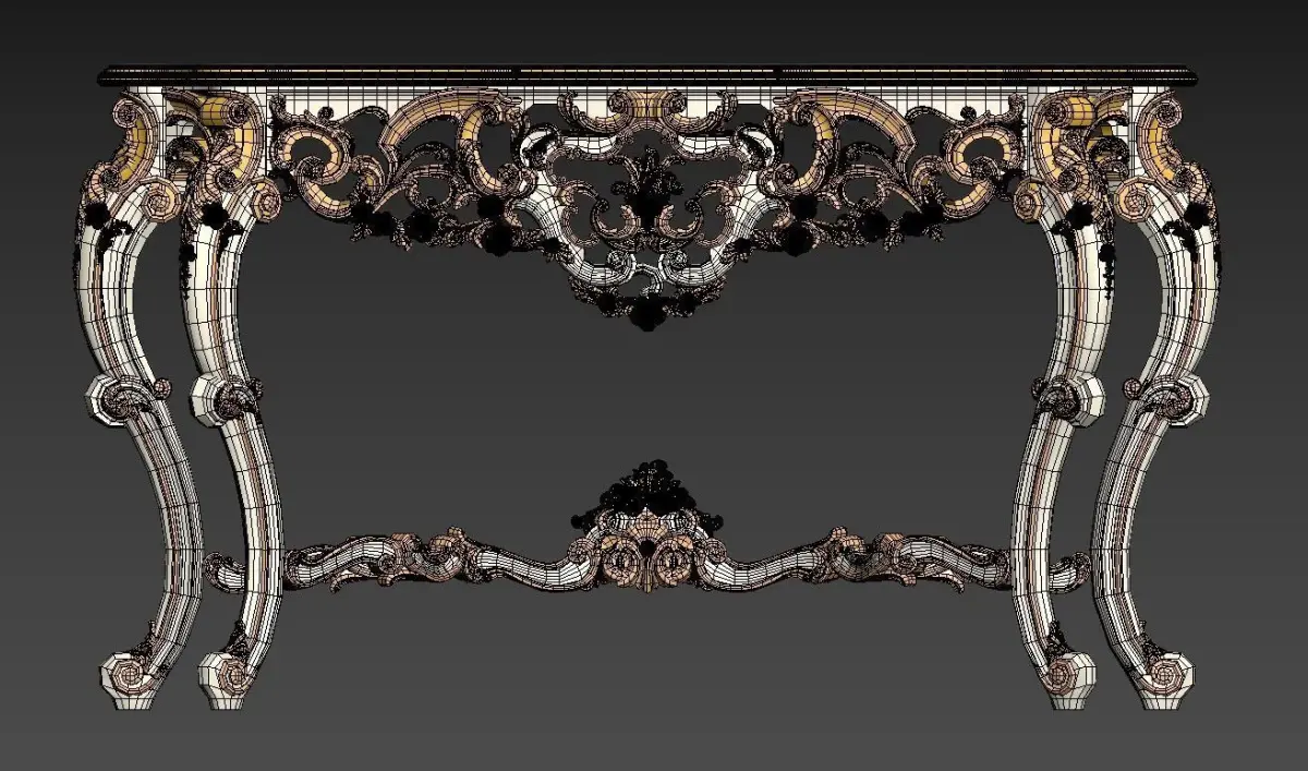 Console Italian factory Asnaghi Interiors.Materials and finishes: solid wood, wood carving, gold foil (gilding), natural veneer.SIZE: Cm 160x54x90hverts:1555838polys:1565881
