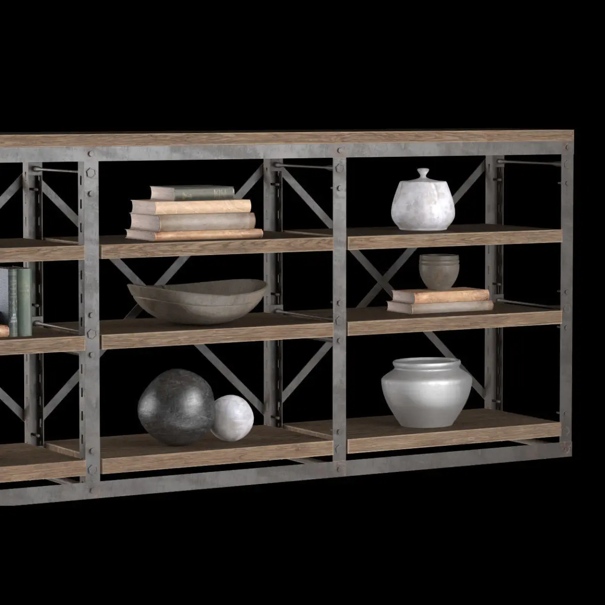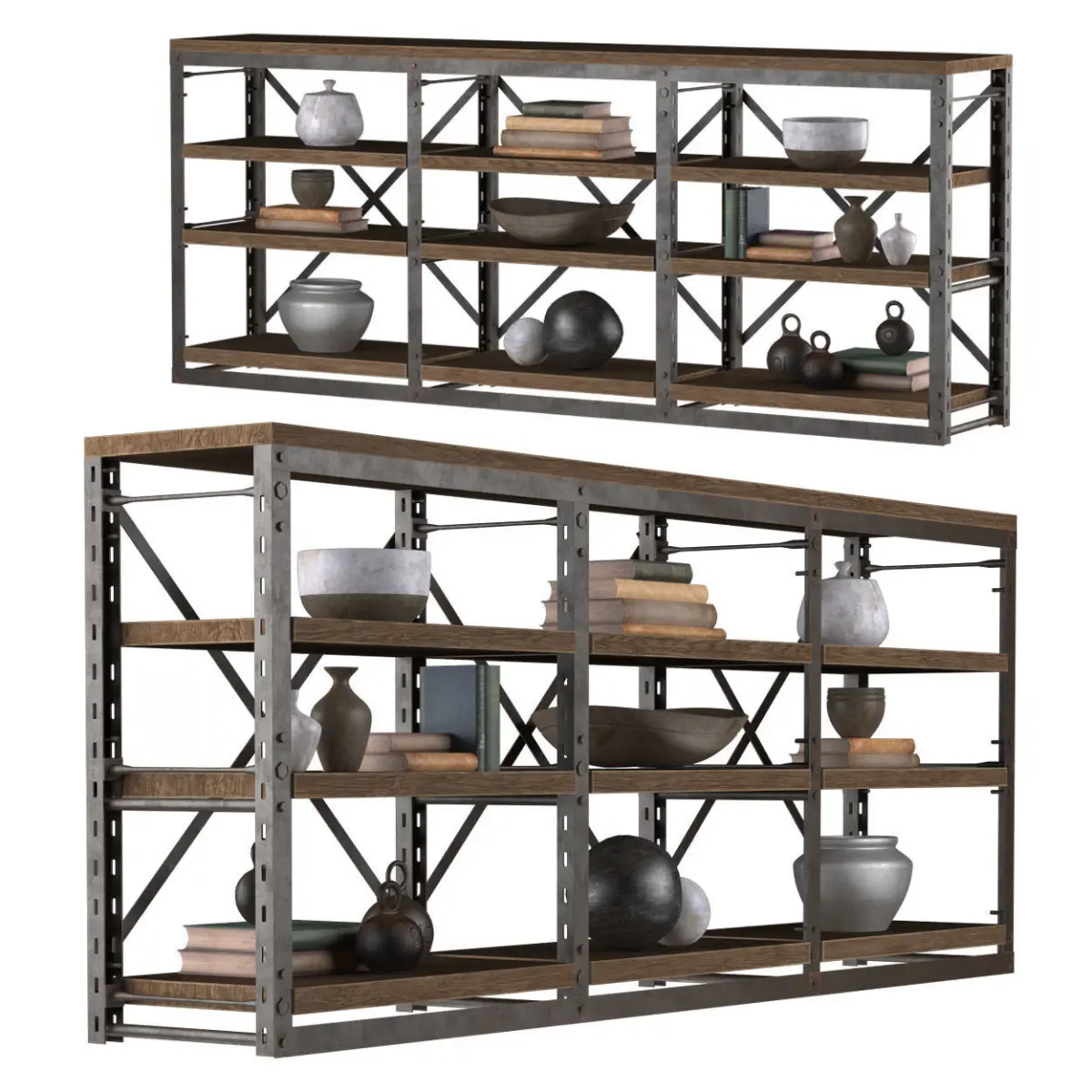 This model: Console French Libary TripleTags: 3d model rack console set rust iron shelf book cup bowl jug loft art design furniture vintage industrial styleDimensions: 229 * 38 * 90Made in 3d max 2011Visualization in the V-Ray 2.00.02Polygons: 103852Summits: 86448The model is located in the scene at the originAll objects and groups have friendly namesAll materials have meaningful namesAll textures and maps have meaningful namesAll the way to the maps and textures removed.This should open without error, and additional windows.The archive copy in FBX and OBJ formatsPerfect for your interior renderings for close-ups and for the medium.