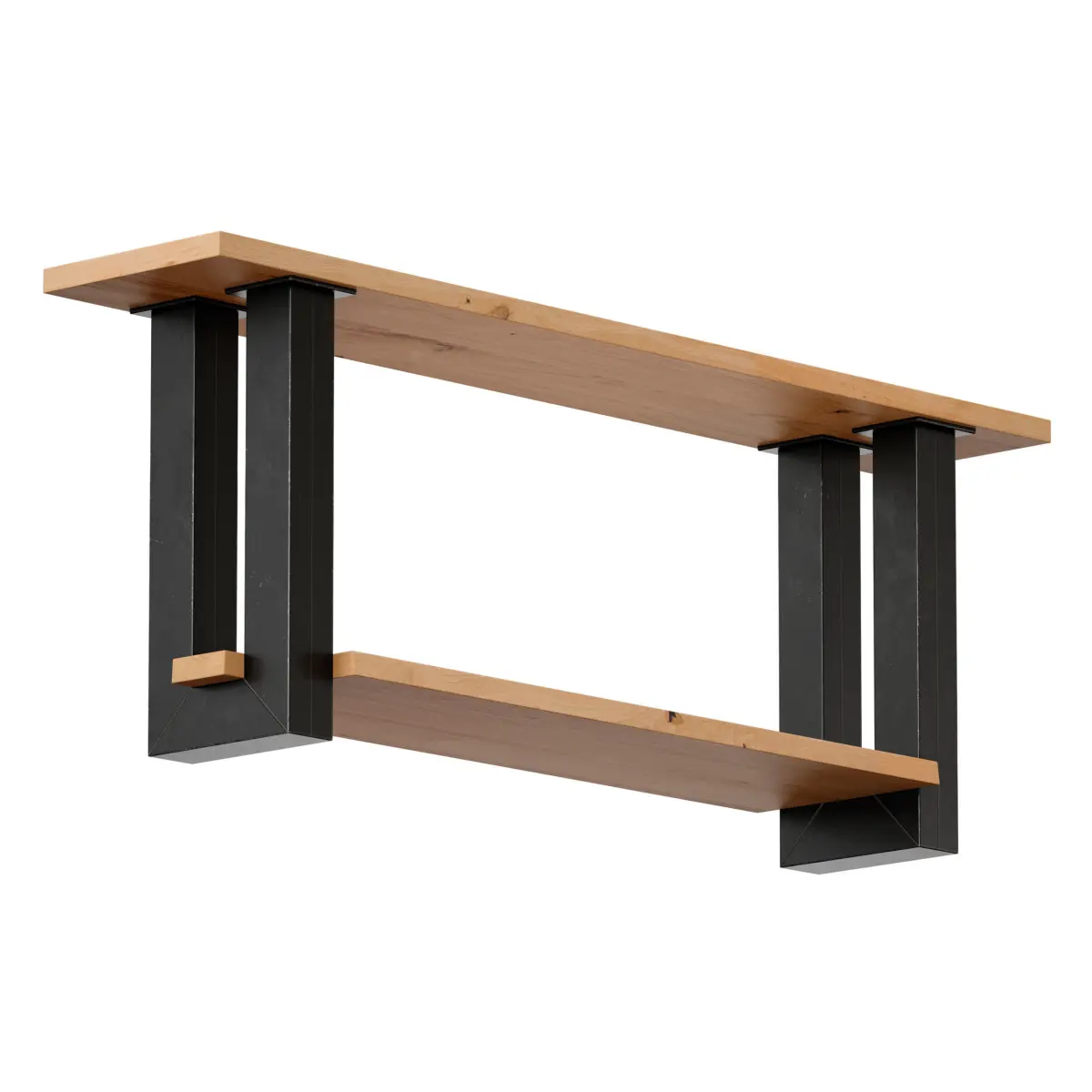Sidetable, console by Oldwood Athens (Sidetable Athene). The legs of the table are made of metal profile, painted in black. Top and shelf in light oak.