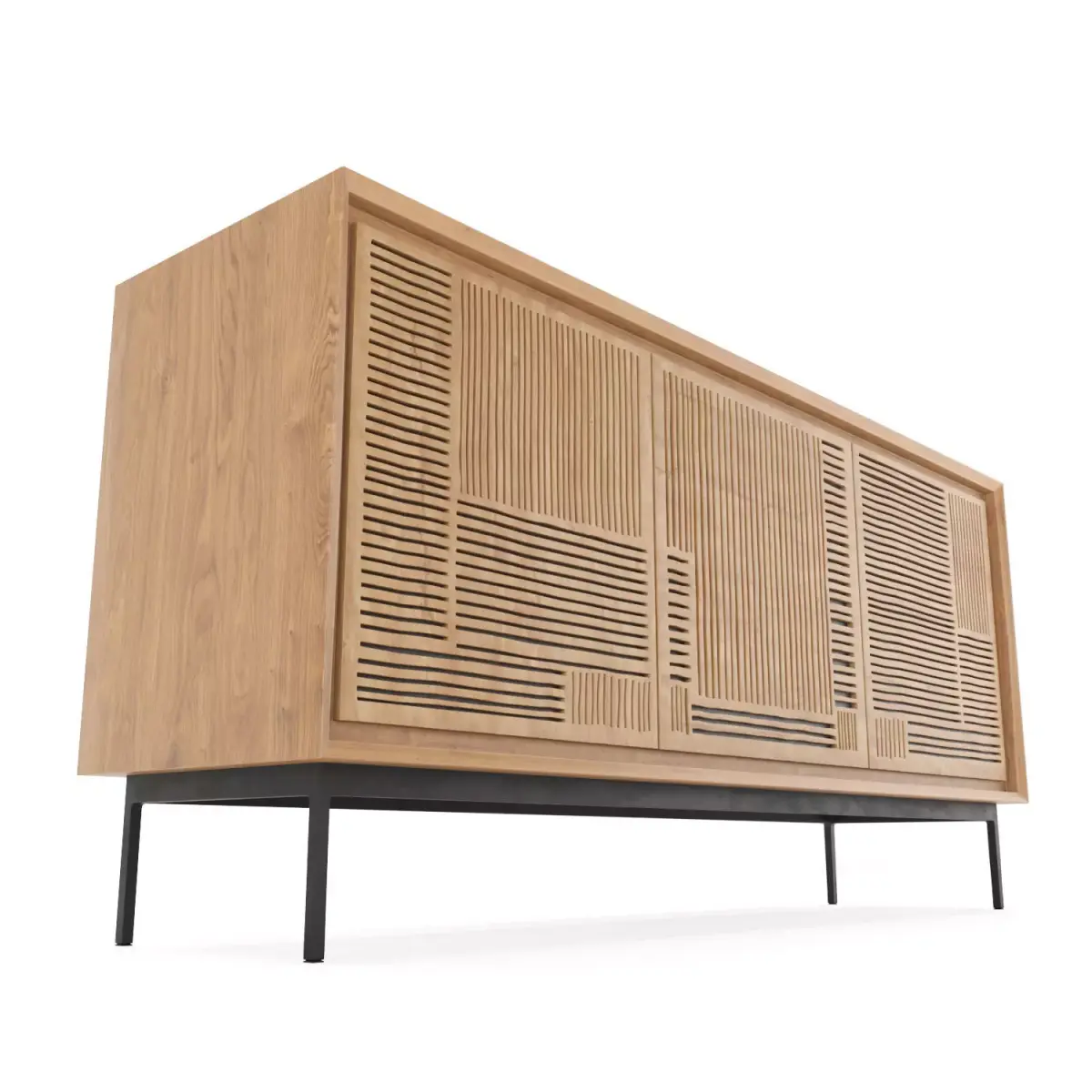 Authentic Keenan Credenza console table in aged light wood is perfect for both Loft or Ethnic style interiors and modern minimalist interiors, as a console or TV stand.