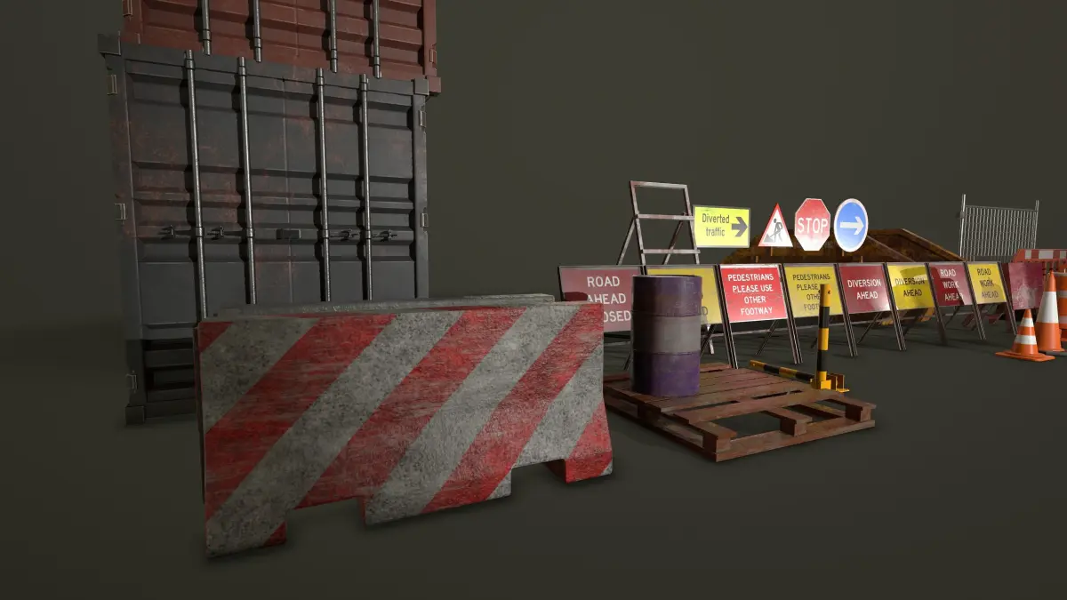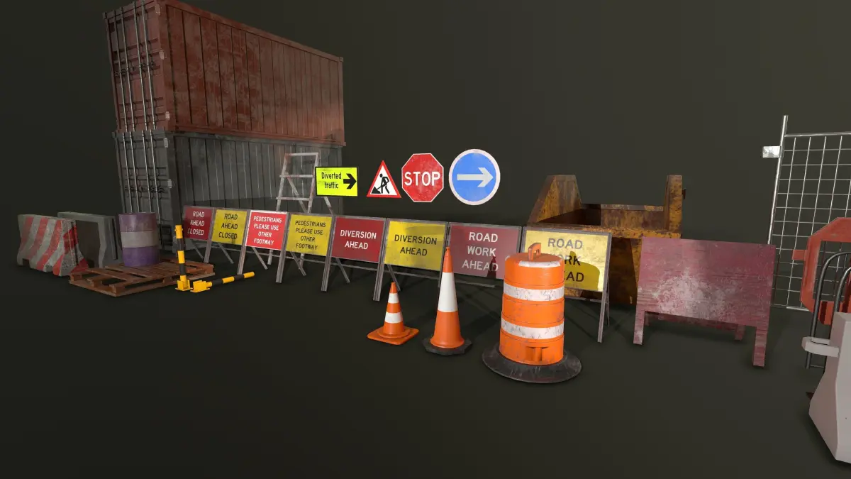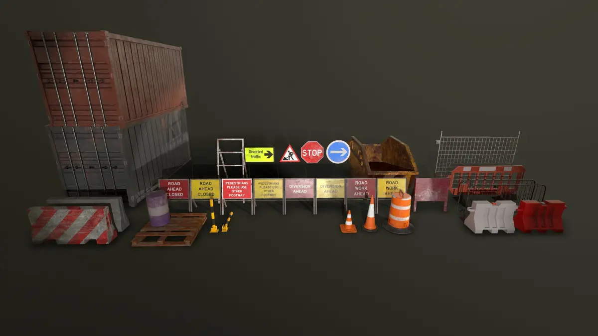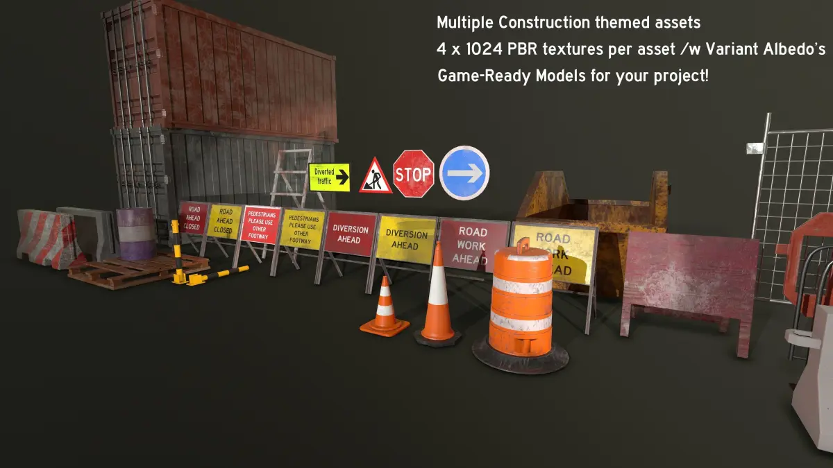 This construction themed asset pack is perfect for dressing any urban environment, the pack includes multiple assets that have their own indivual textures and some variants too, they are 4x 1024 PBR (Metallic, Roughness) and game ready