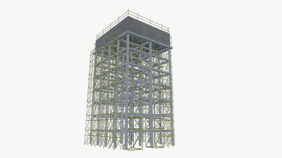 - This 3D model of a tower with scaffolding is an essential asset for construction projects, providing a detailed representation of a building under development.
