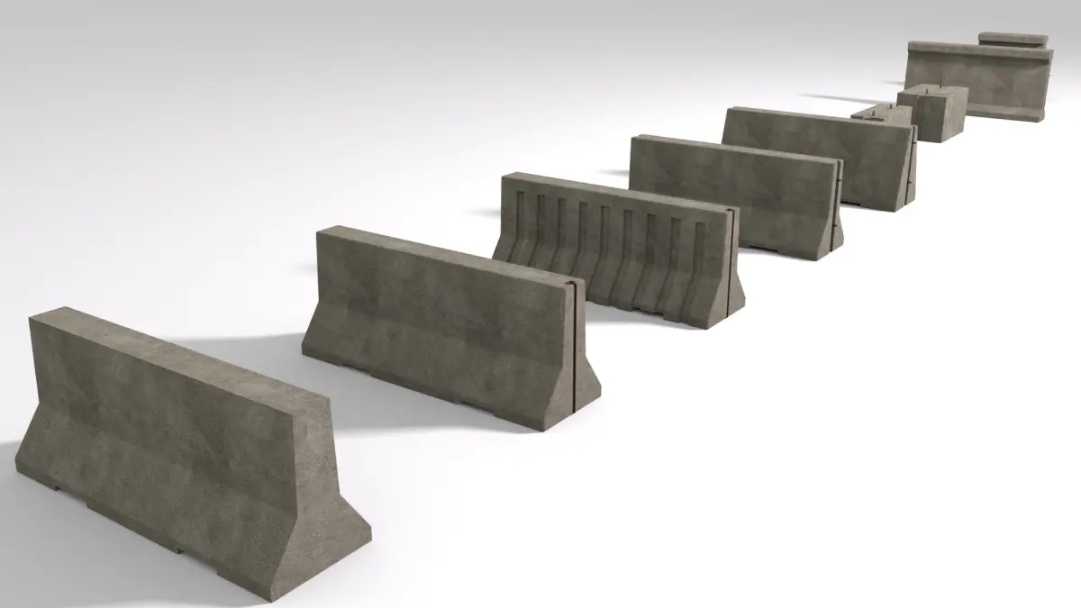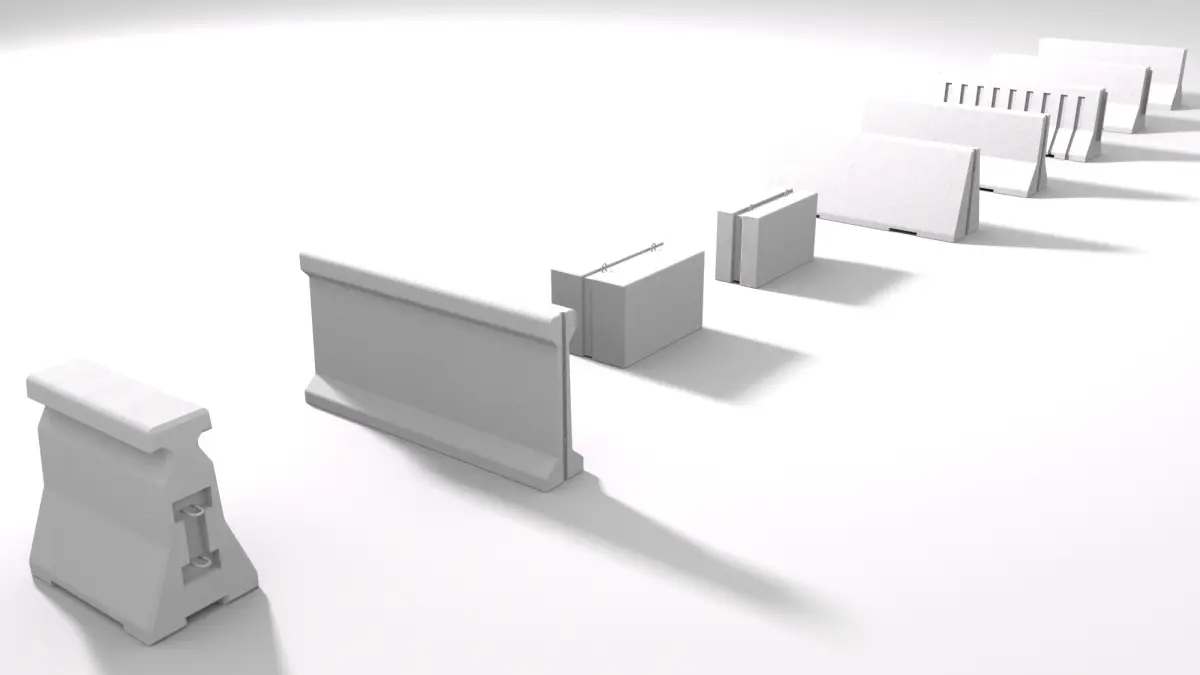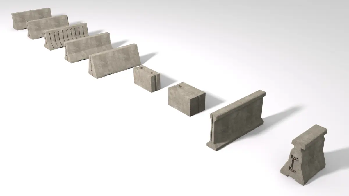 Nine construction concrete barriers/barricades for use in urban settings. High-resolution textures, modeling, and low poly count per asset. Assets are game-ready.