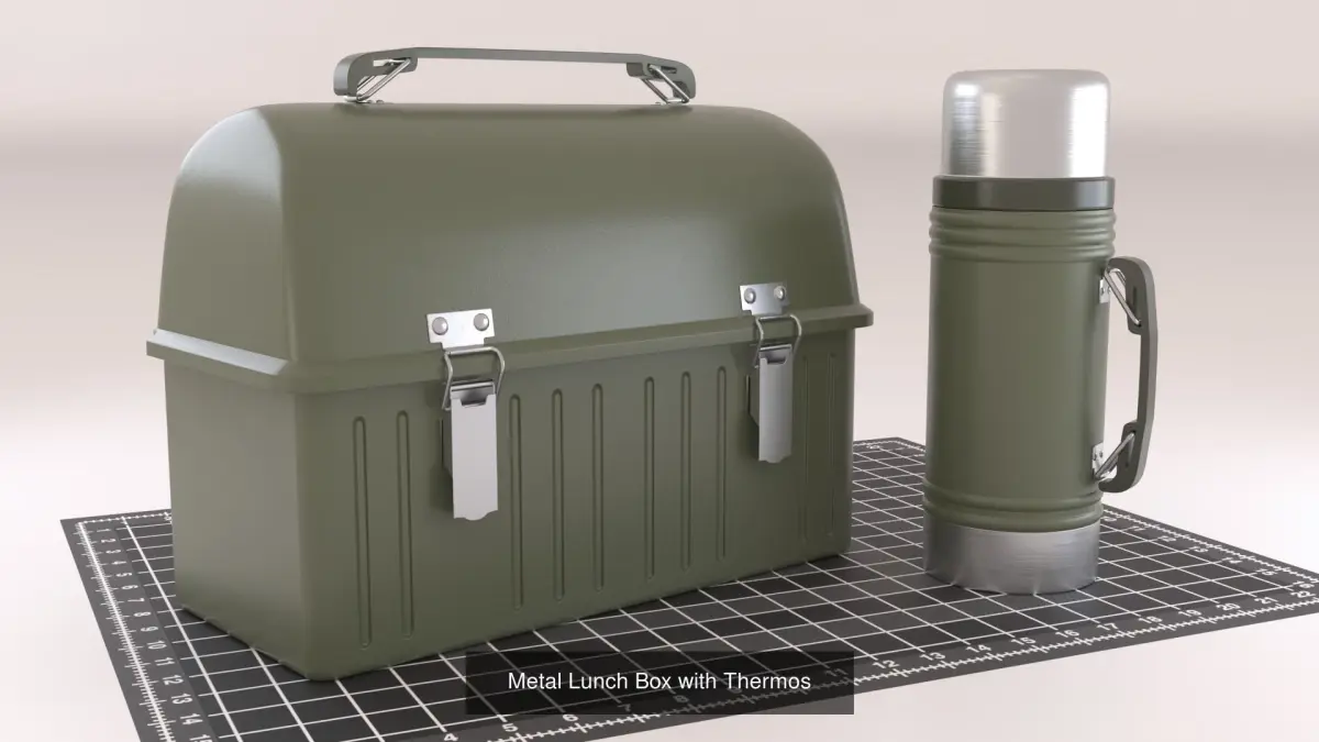 Box of Nails / Metal Lunch Box with Thermos / Flathead Screwdriver and Phillips Screwdriver / Hammers / Tape Measure