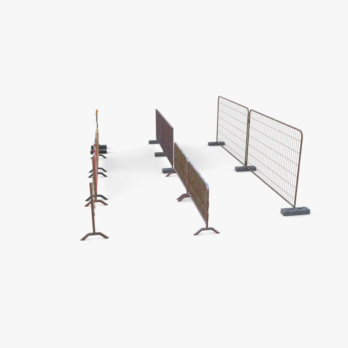 Materials and textures:The models have materials applied in all formats, and are ready to import and render.Materials are image based using PBR, the models come with five 1k png image textures per each barrier, thus 35 images in total.