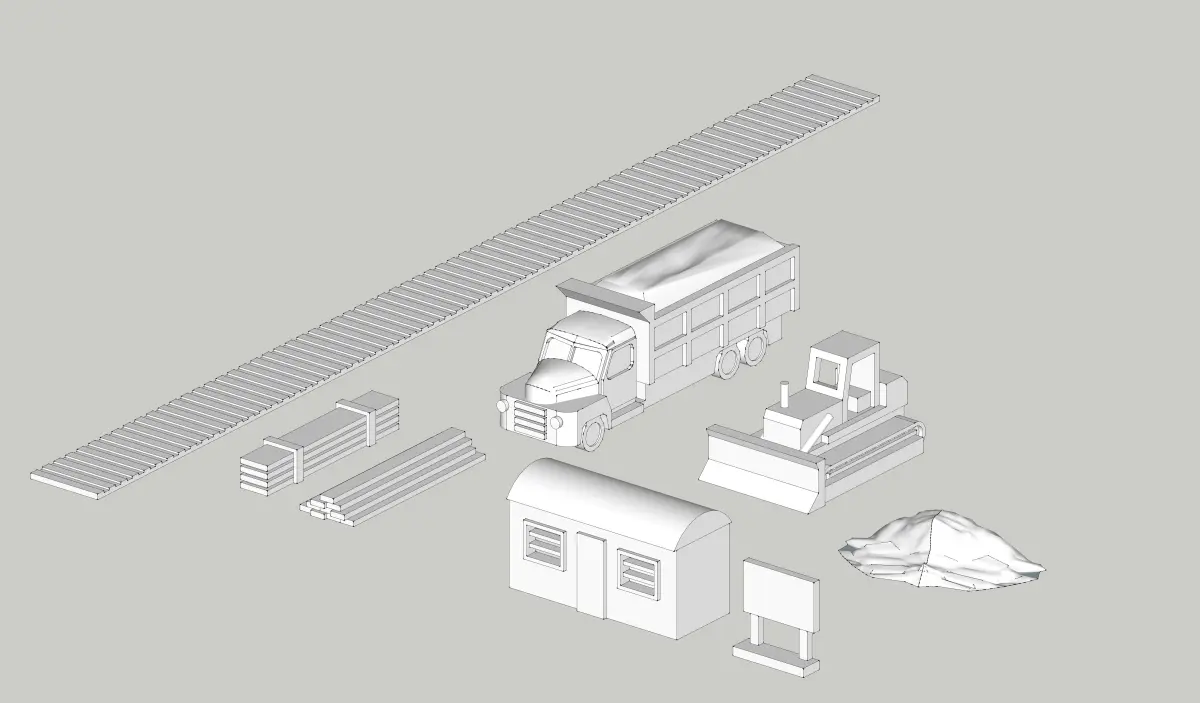 Construction Site Bulldozer Dumptruck Sand Set by Outland Models Low-poly 3D model