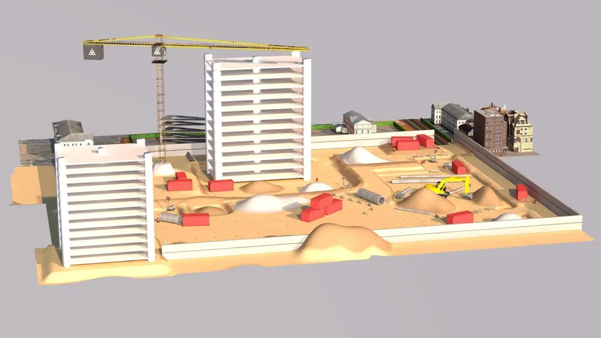 This is a fully detailed and textured, Low Polygon Building Construction model.It contains construction buildings and a crane and some construction material.