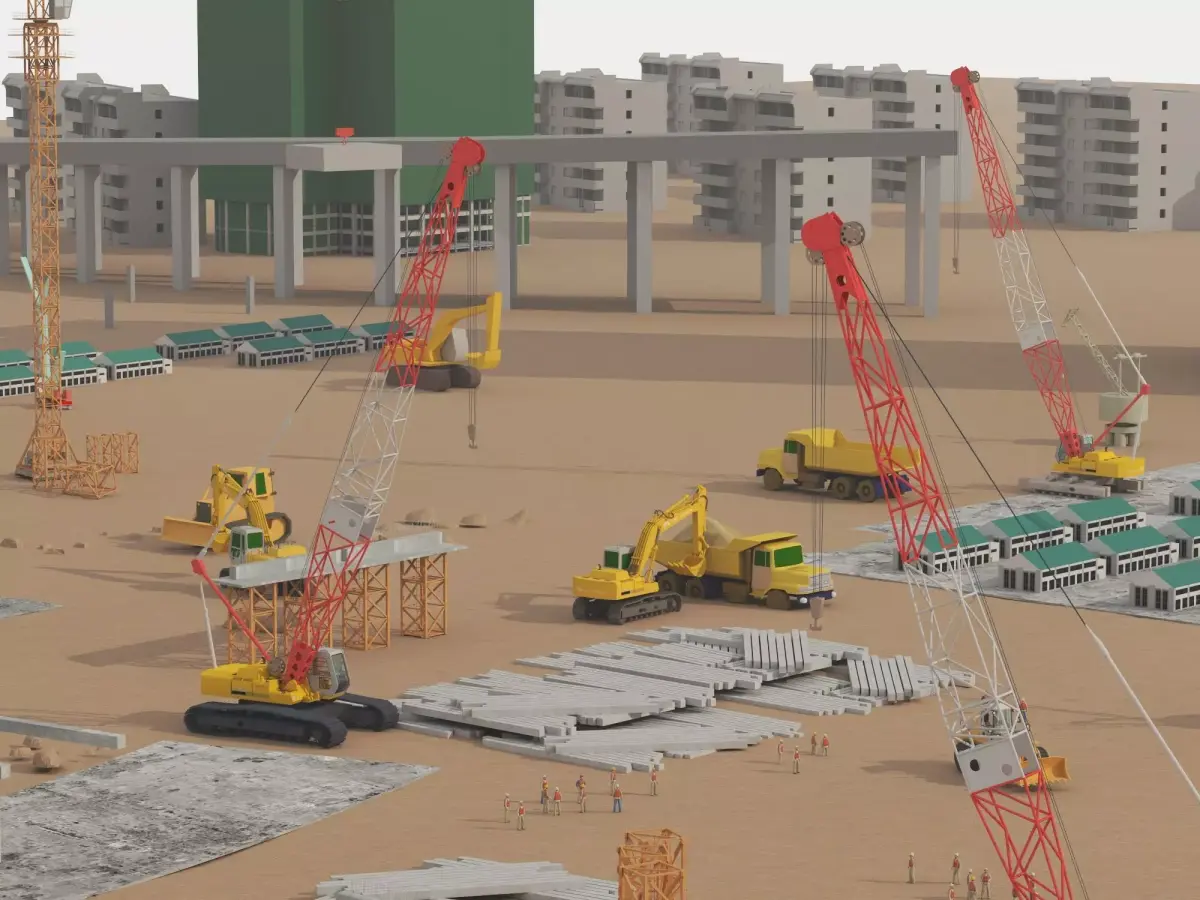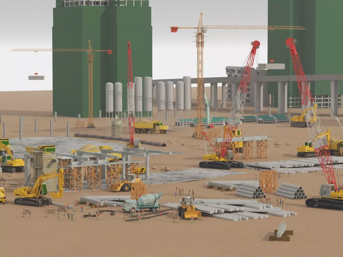 Suitable for architectural visualization, city development projects, construction progress presentations, industrial scenes and professional renders.