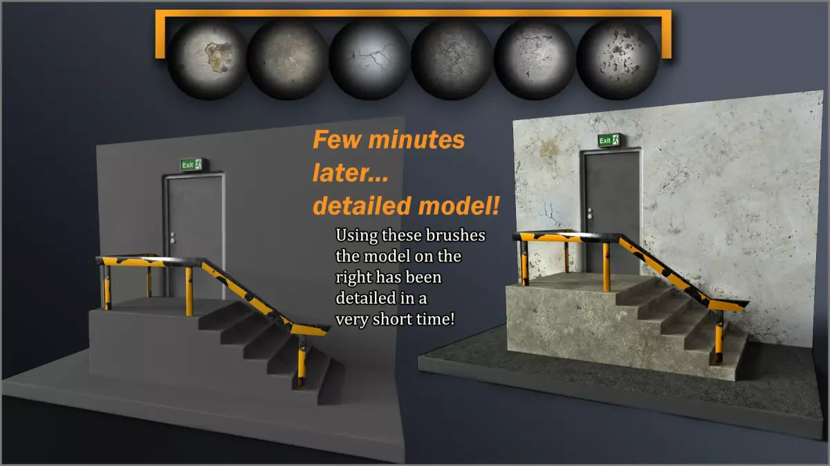 Construction Surface Maker for ZBrush **contains a wide range of brushes designed to sculpt, detail, and paint construction surfaces. **From rough concrete and cracked plaster to gravel, brickwork and asphalt, this pack is great for building urban, sci-fi, dystopian, or architectural environments.