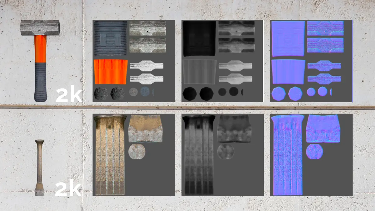 Construction Tools - Sledgehammer and Chisel Made in Cinema 4D R19 in polygonal mesh and exported to the files; 3ds, dae, fbx, stl, obj and blend.The textures in UV mapping of 2k being color, bump and normal.I hope you like it and that it is useful in your work.Thanks for visiting, renatodalle