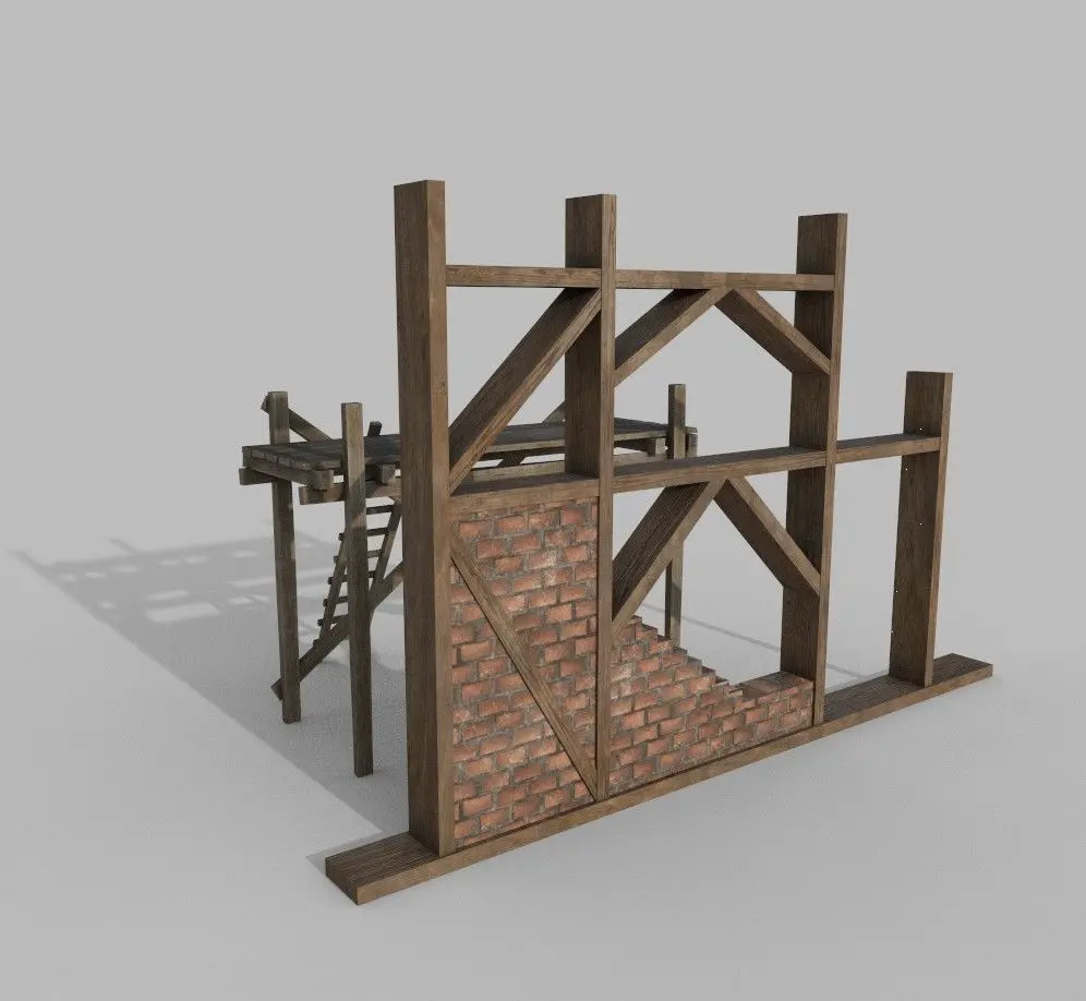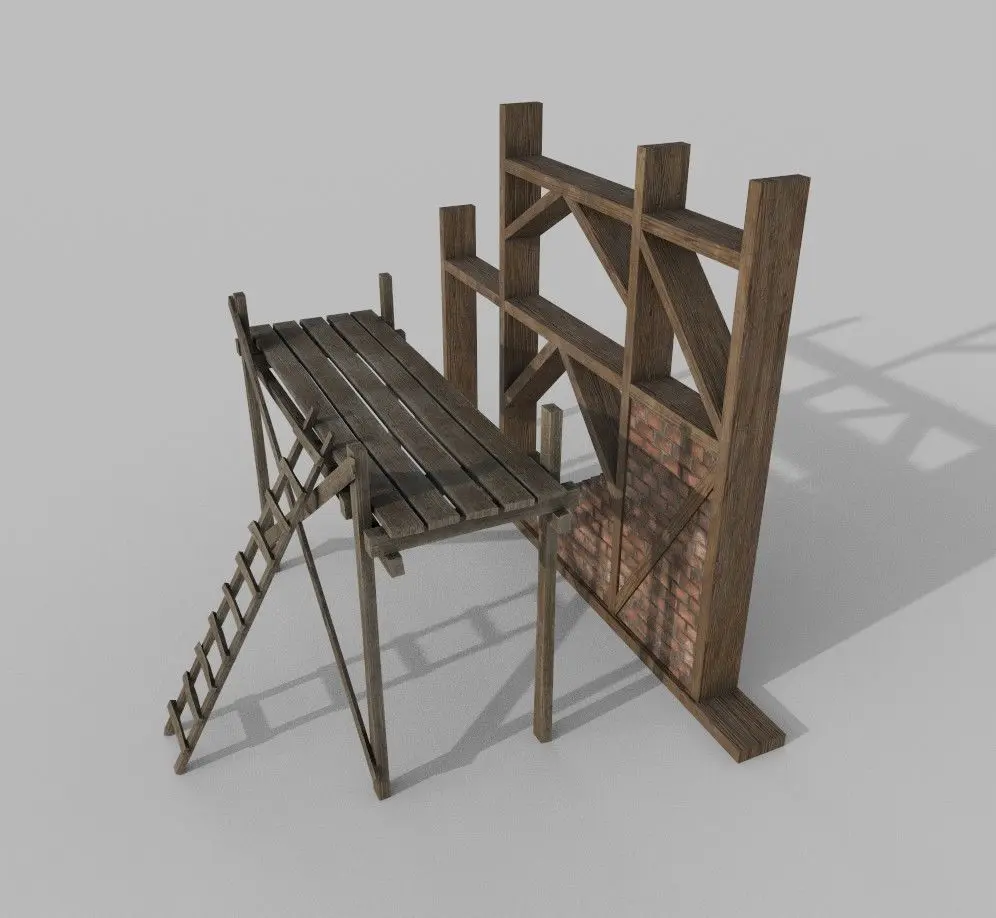1 texture set for the wall (2048 * 2048) and 1 for the scaffolding (2048 * 2048)