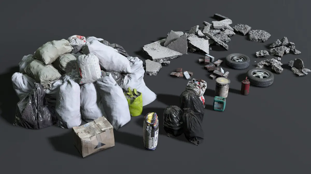 I present a collection of 18 high-quality 3d models of Construction waste.
