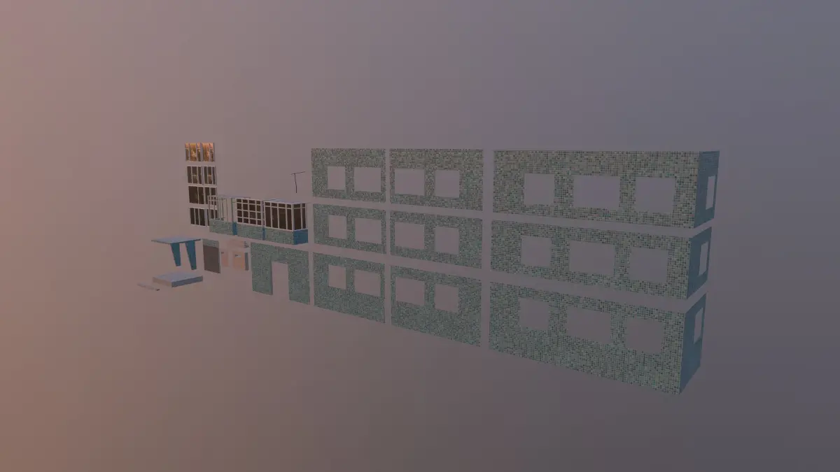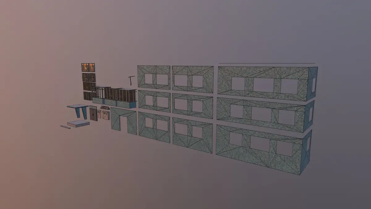 Constructor panel house for your projects!30 constructor elements to create different building models.-10 wall models-8 window models-3 models of balconiesand other models: (door, visor, porch and step, 3 elements trumpet, antenna, roof)The model have PBR textured (2k) Metalness\Roughness.3 color options.Poly: 1538Tris: 2354Edges: 2908Verts: 1497The archive example_Houses_obj contains models on preview and they are presented for reference.