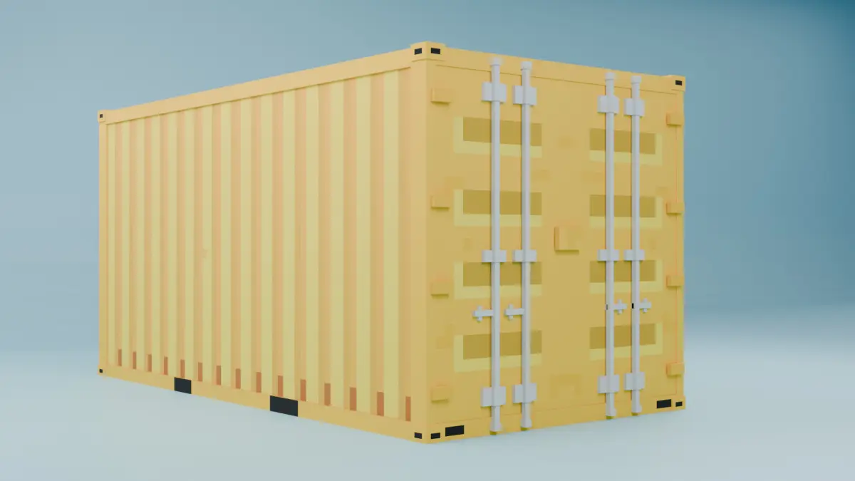 This is a 3D model of a standard 20-foot shipping container, created using Blockbench. It features clean geometry and accurate proportions, making it ideal for visual presentations, design concepts, or animation projectsIt contains .blend file
