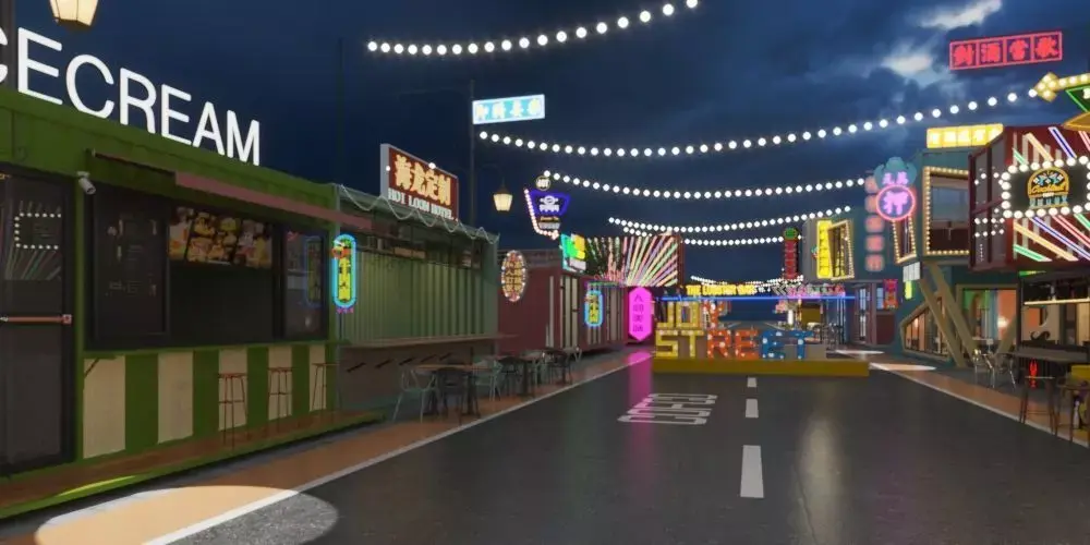 Container Food-StreetContainer Snack-MallShipping-Container-MarketIndustrial-Style-Food-ParkModular-Commercial-StreetUrban-Night-Market-Model