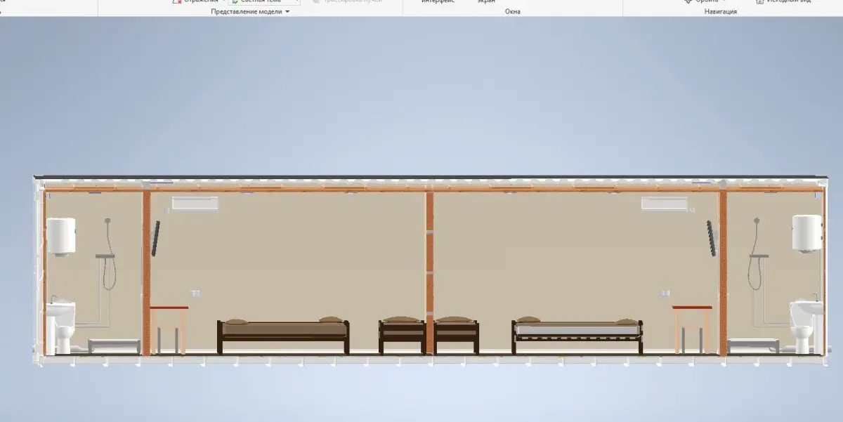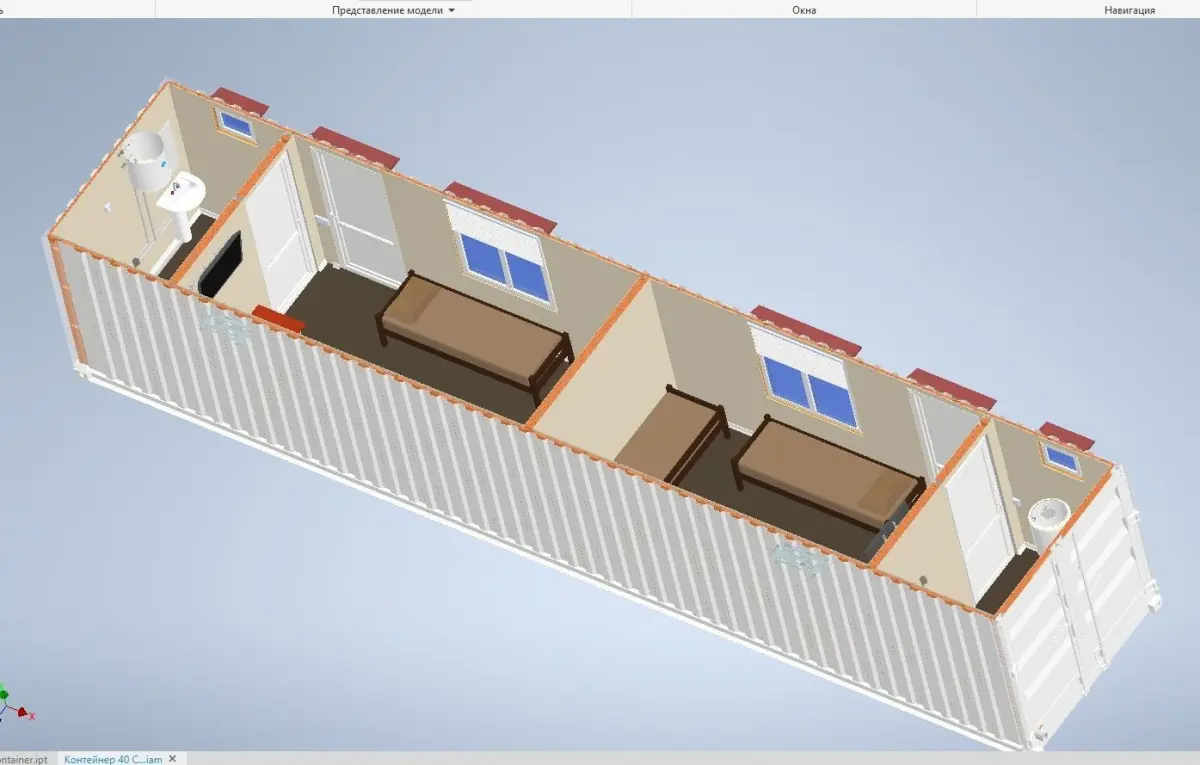 High resolution,realistic, fully detailed and textured exterior and interior of a Special design from 40 ft container for garden and field courtyards.
