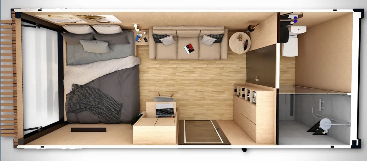 Container hotel.Modern , completely finished ,fully furnished container house /mobile home/vacation house/tiny house with terrace. Modern designed container hotel with terrace, bedroom/living room,bathroom- toilet/shower. Unique designed,highly detailed model with lot of useful 3D models such as pots,bathroom accesories , living room decor, tv set decor,lounge chairs, plants and furniture in it and lounge on terrace..Model contains all the furniture in living room/bedroom, bathroom and terrace ;outdoor furniture,sofa,bed,closet,shower, sink,faucets,.Different facade variables are possible . Also feature a paintings from my friend. On thfront of the house ,nice terrace .Suitable for sea site area ( kamping) as for the mountain areas or hotel room foldable units. Model is done with sketch up 2017 pro and rendered with v-ray 4. All textures appliances and furniture equipment is in high resolution,have been checked and are included in scene.Model is easy to manipulate and ready to render with v-ray. Real world scale and exact proportions cm. Realistic and correctly scaled ! • Excellent polygon & texture efficiency Purchasing this model , you get files in different formats as :skp ,lumion 8 ,or ask designer for different formats. 3DS max users can use sketch up ,2008 file formath , that i can provide. Additional Textures provided with the model: Normal Maps; yes Diffuse Maps; yes Textures; yes Materials; yes U.V maps; yes Checked that normals are facing correctly; yes Blendshapes; no Rigged; no All quads no triangles ;yes 3D printable with STL. ; no If you have any additional questions or requests about the model, don't hesitate to contact us with your inquiries.
