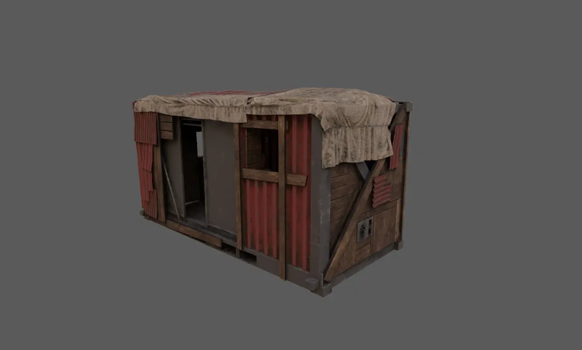This trashy living container has 4 material id's assinged: Wood, cloth, metal and corrugated metal. The model also includes 4K textures for all the materials.Textures are made with substance painter and the model itself is made with maya. Uvs are layed out for every material between 0-1 space.It is a low poly model originally made for using it within a game engine (VR).The idea behind was to imagine how poor people could life in the future and how their living spaces could look like.