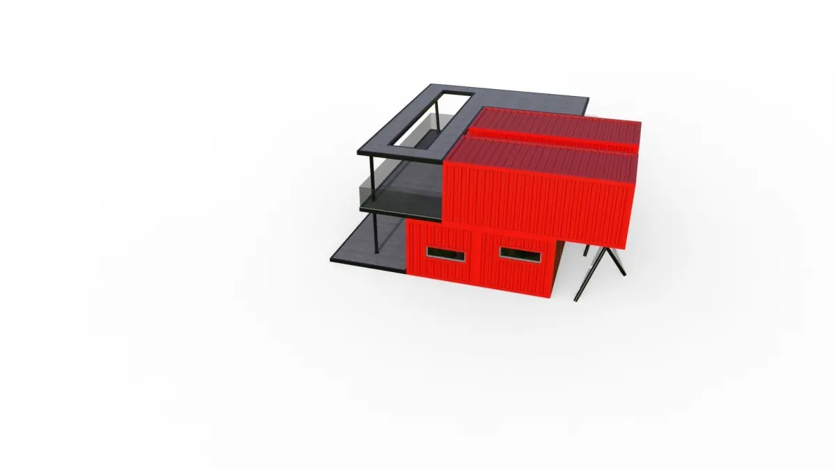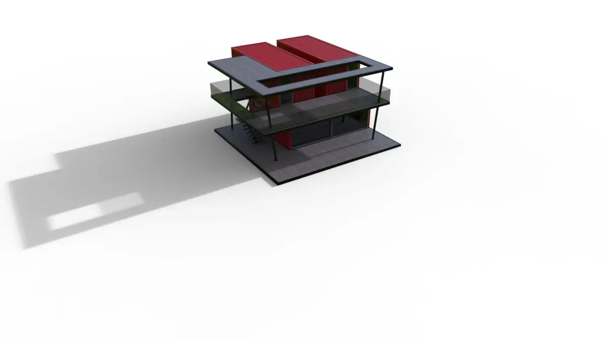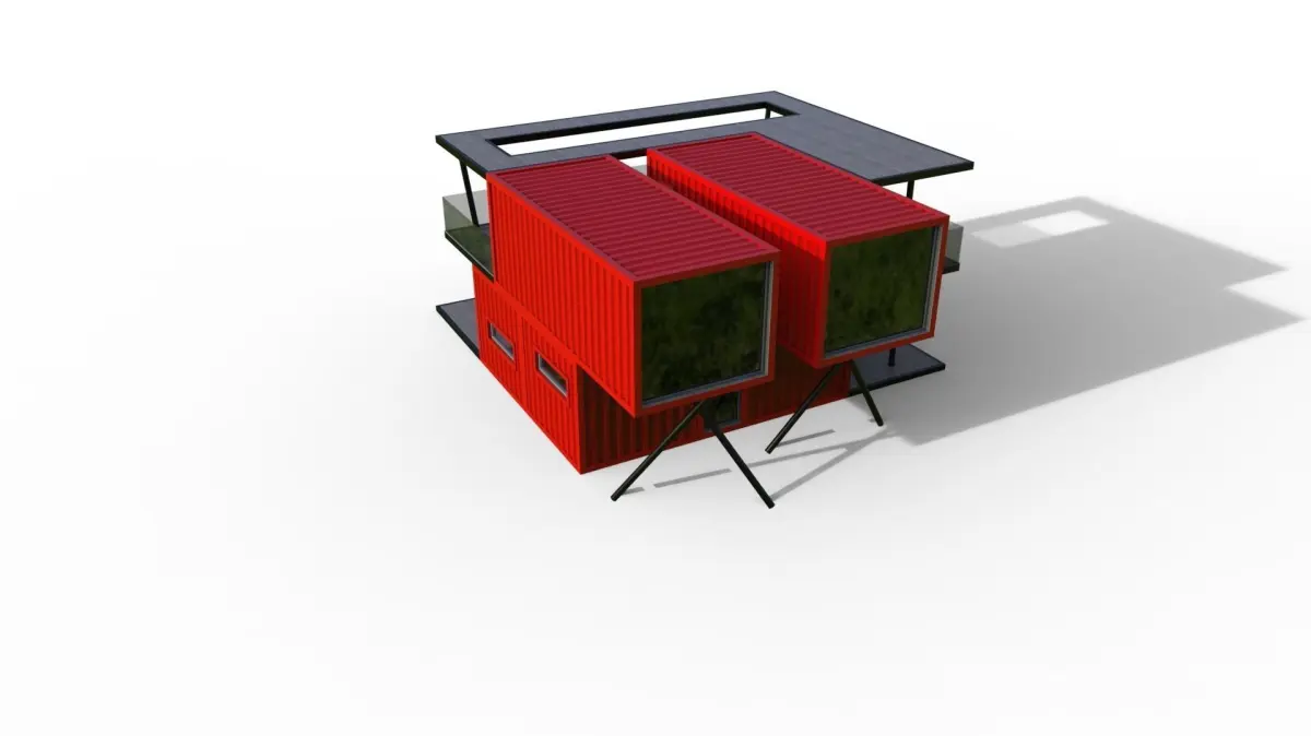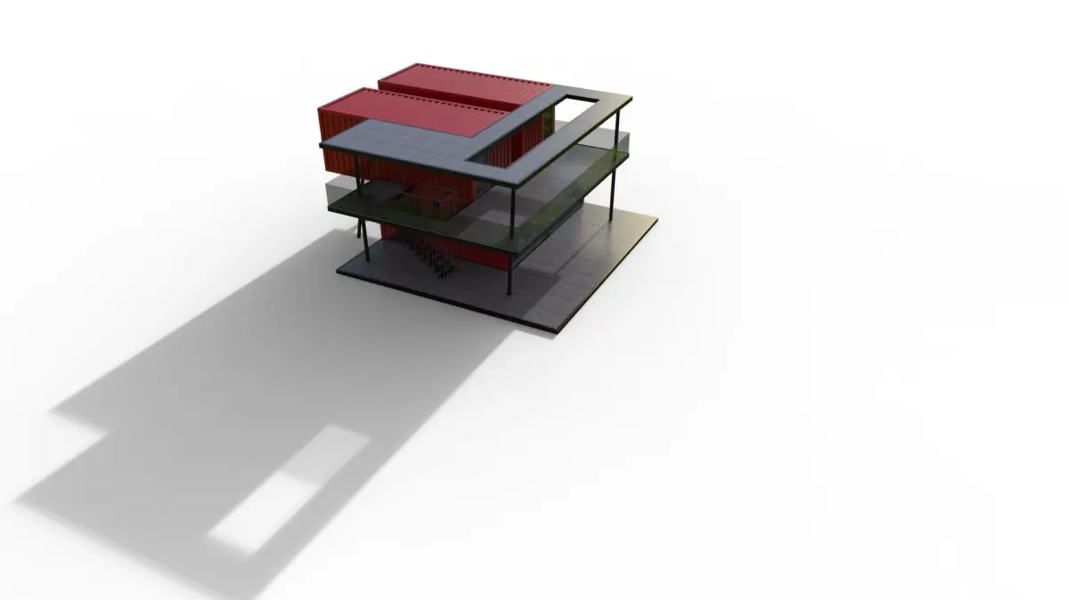 Container house model. The container house model, designed by using 4 containers in the modular system, has two floors. It has a lower and upper terrace. The rooms on the upper floor are accessed by a steel staircase from the outside. It is designed using modern materials. The required file formats of the model have been uploaded. You can use the container house model in your desired project, game or movie scenes. Thank you for your interest. Please do not forget to like and comment.Thanks...