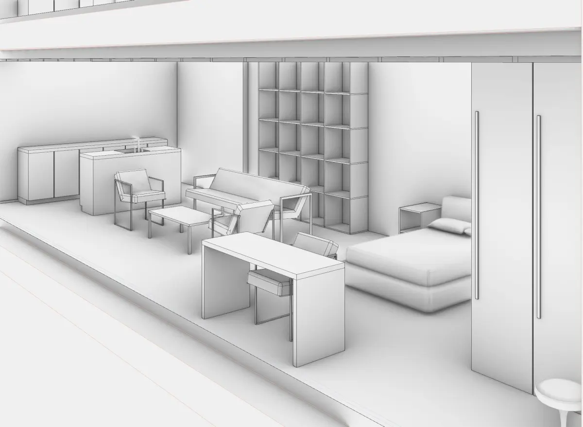 This is a 3d model of a high-rise building of 176 apartments. It is 158 meters tall. Steel structure and container like aprtment units. The circulation is done through an interior perimeter corridor and a central stairway. The units are well designed with materials, furniture and full celling lighting.