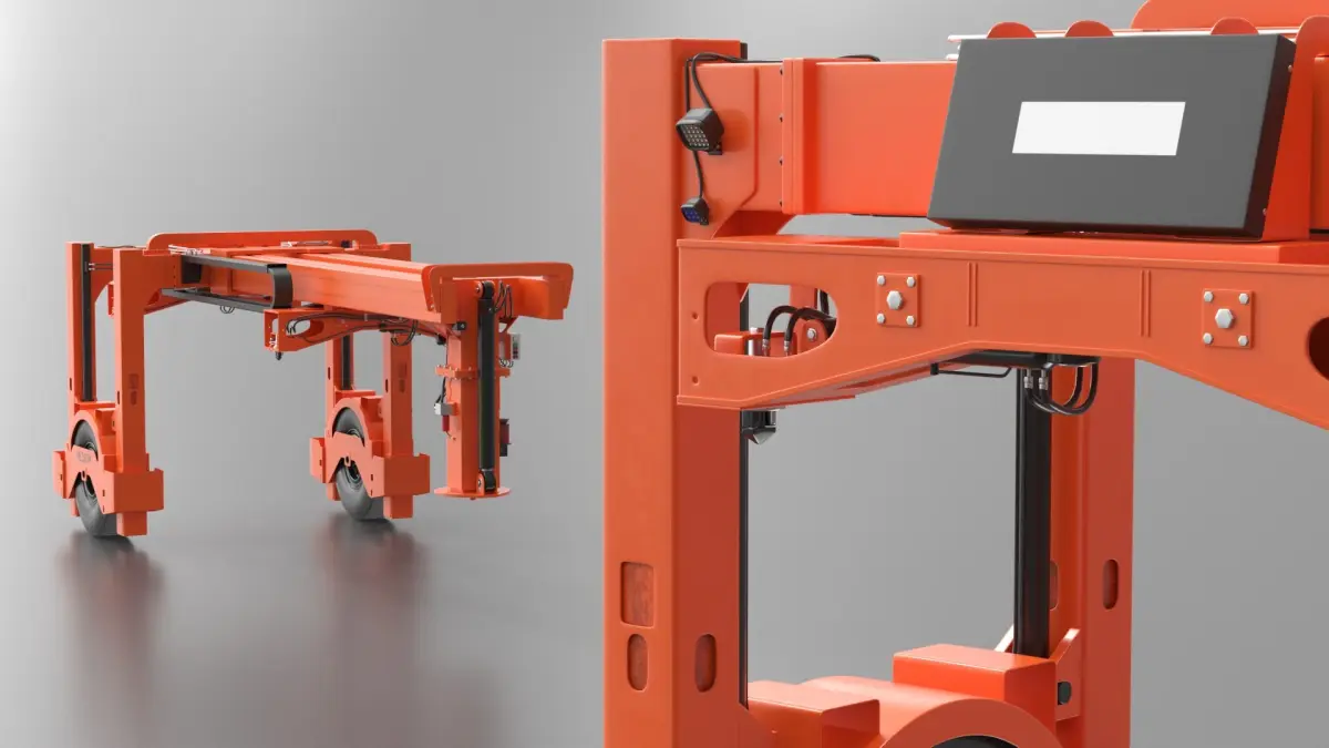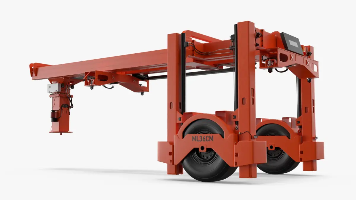 For container logistics training, industrial vehicle design, intermodal freight handling, port operations, cargo transport simulations, transport engineering, logistics education, equipment demonstrations, commercial fleet showcases, academic research, vocational training, freight yard management, and mechanical design evaluation.