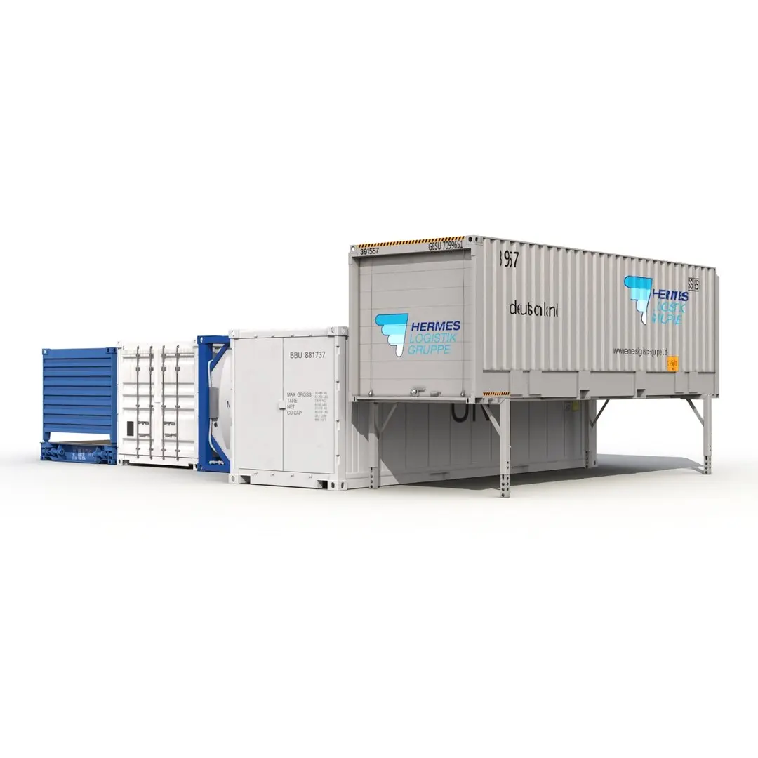 Containers Collection is a versatile set of 12 high quality, photo real models that will enhance detail and realism to any of your rendering projects. The model has a fully textured, detailed design that allows for close-up renders, and was originally modeled in 3ds Max 2012 and rendered with V-Ray. Renders have no postprocessing.