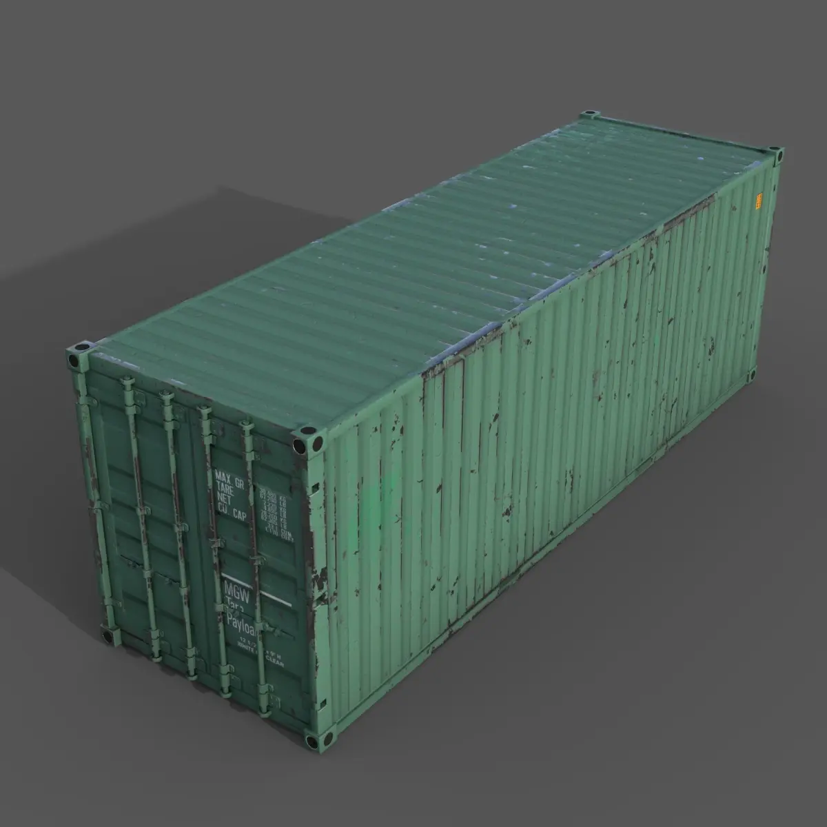 A model of a container. It has 4 sets of textures (No rust, low-rust, mid-rust, high-rust). All textures are 4k and PBR. The assets are game-ready. 3 sets of textures of every state: PBR, Unity and BSDF.