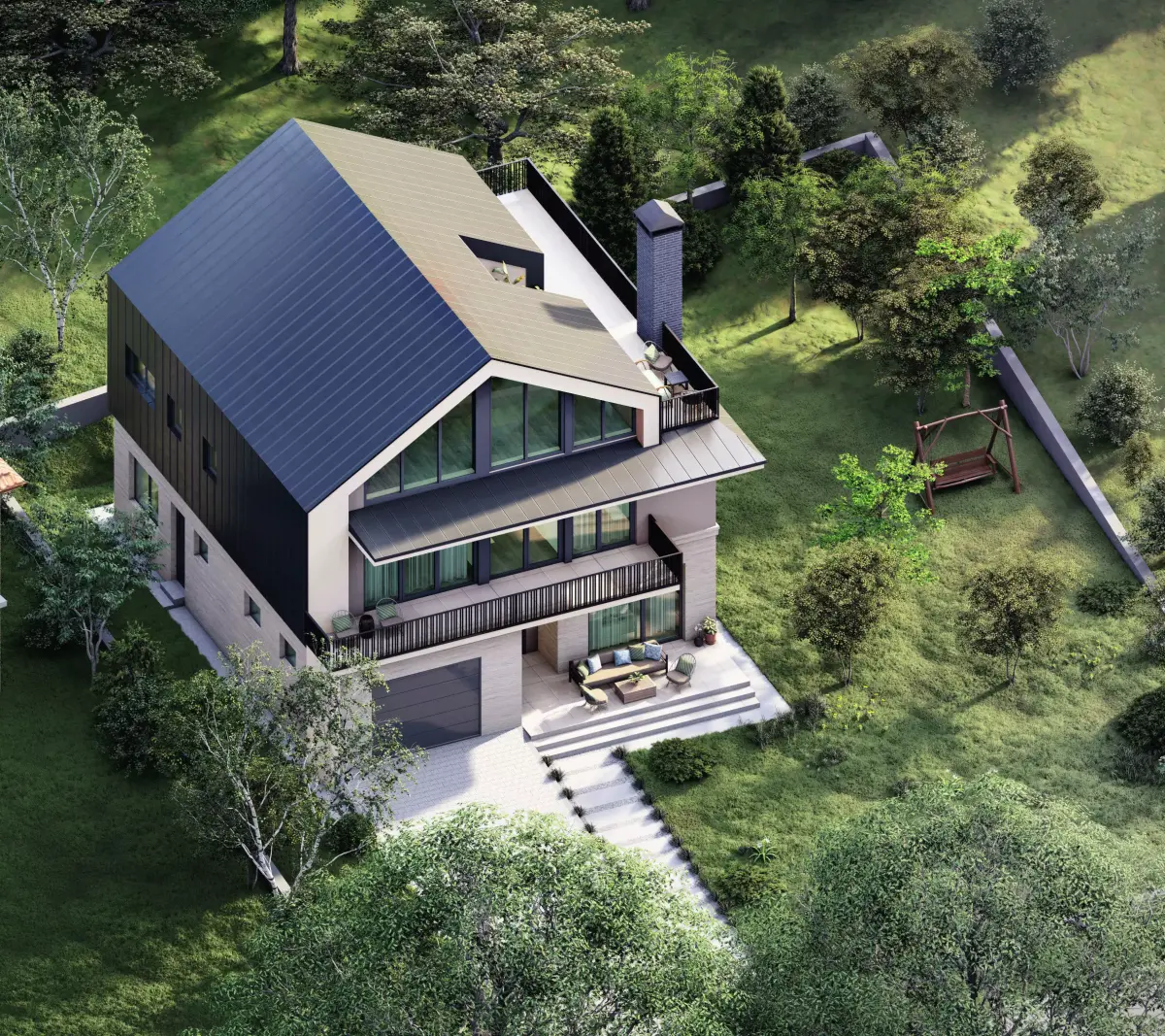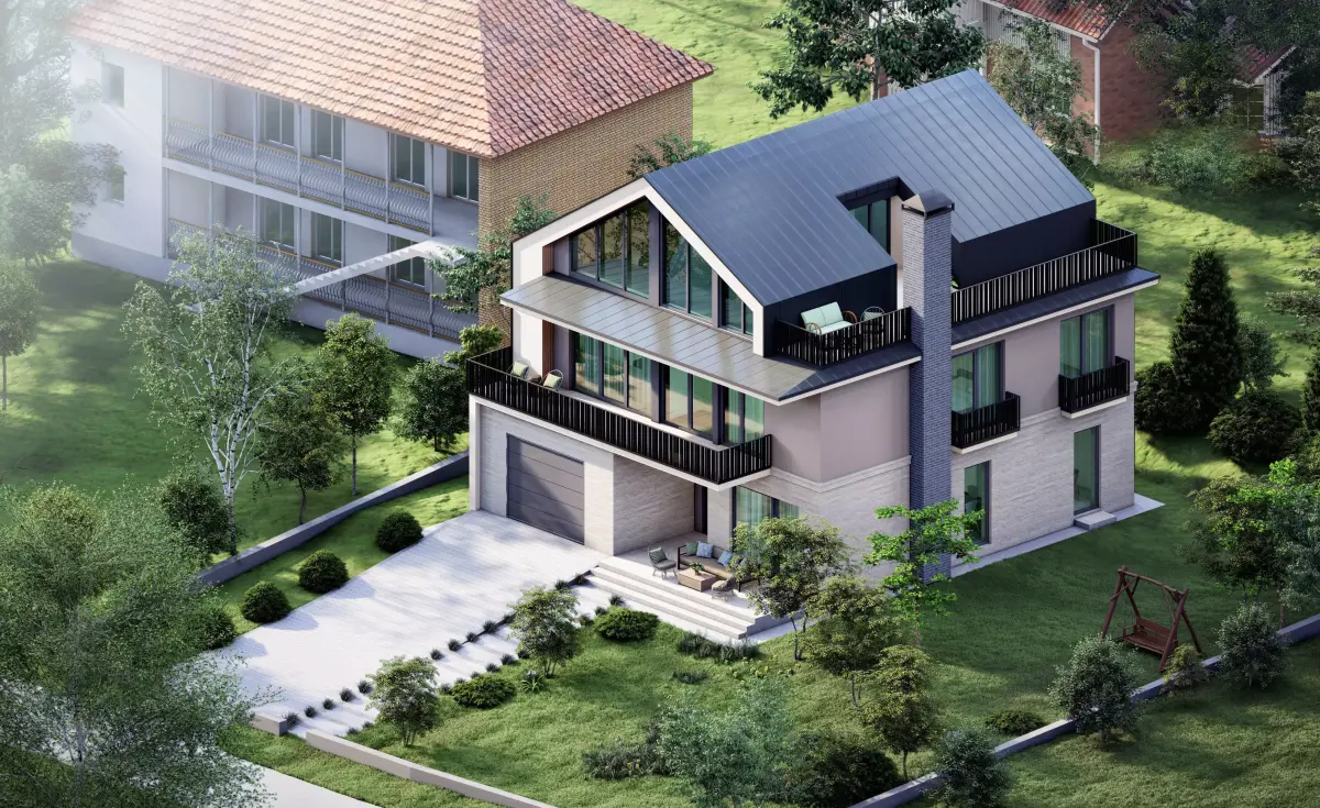 This countryside project involved designing a modern two-storey 350sq.m (11.5mX13m) summer house with an attic and garage. The 4-bedroom residence was created with a contemporary approach, featuring a striking A-frame attic facade that blends comfort, functionality, and modern aesthetics. The Sketchup model includes basic interior such as partitions and furniture blocks. This project was rendered in Lumion 12 (not 11, Lumion file can be downloaded), with all textures sourced from Lumion's free library. The scene is optimized for high-quality visualizations while maintaining an efficient workflow.