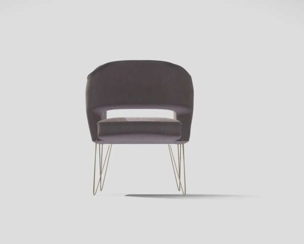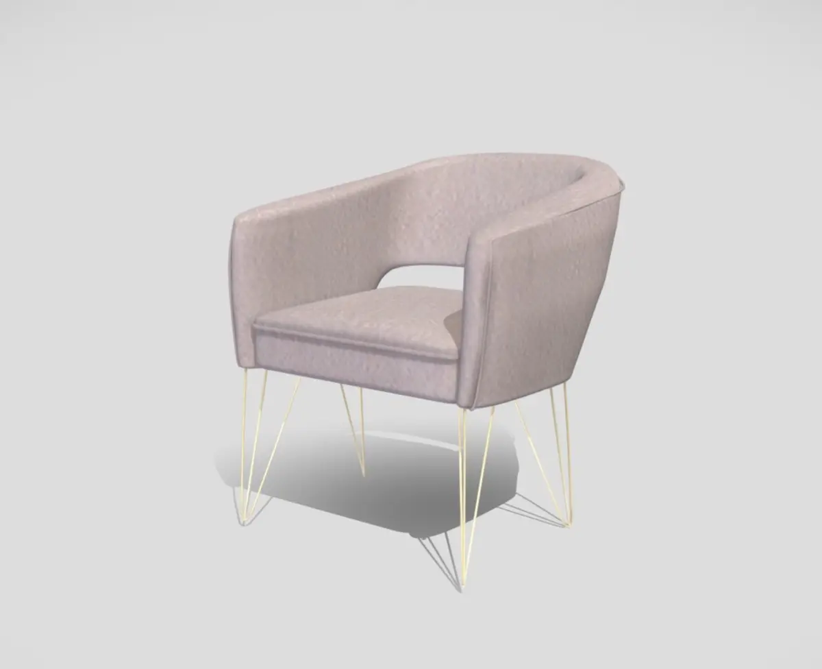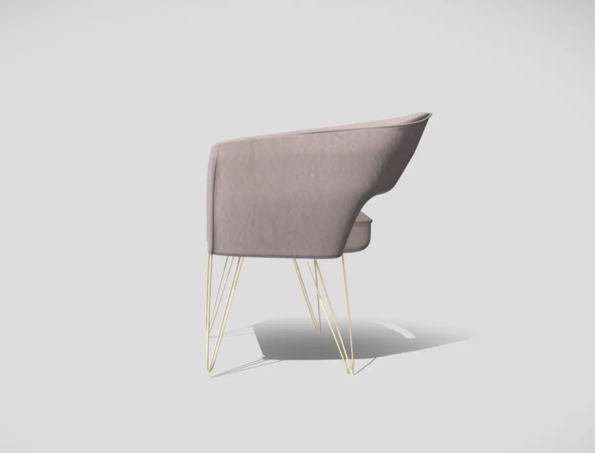 Modern style armchair upholstered in fabric and base in golden metal rods. Fully upholstered in rose color.