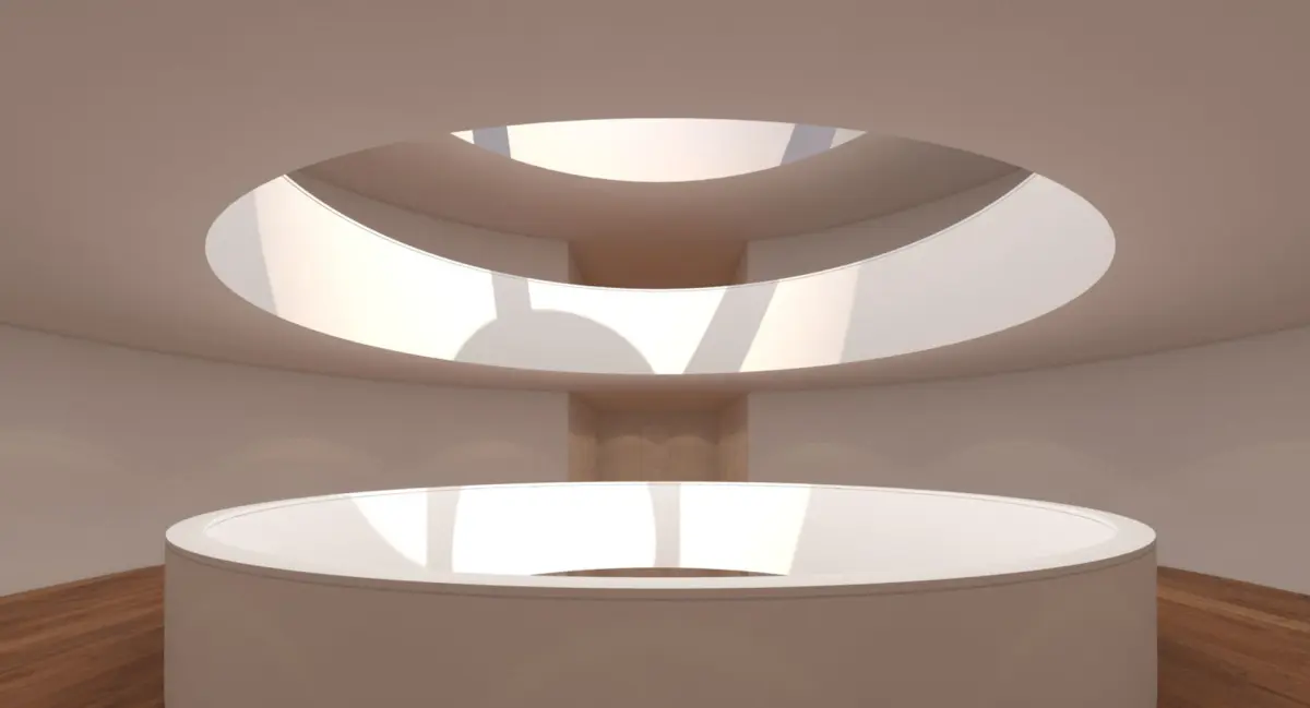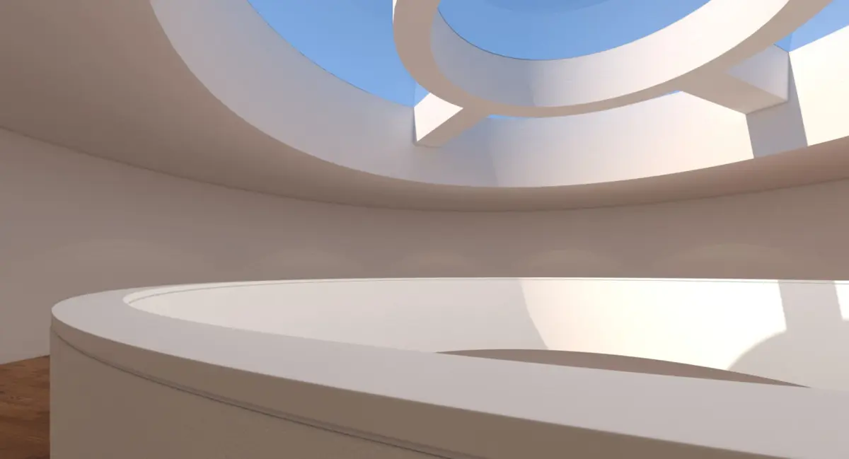 A DETAILED 3D MODEL OF A CONTEMPORARY ATRIUM / ART GALLERY;