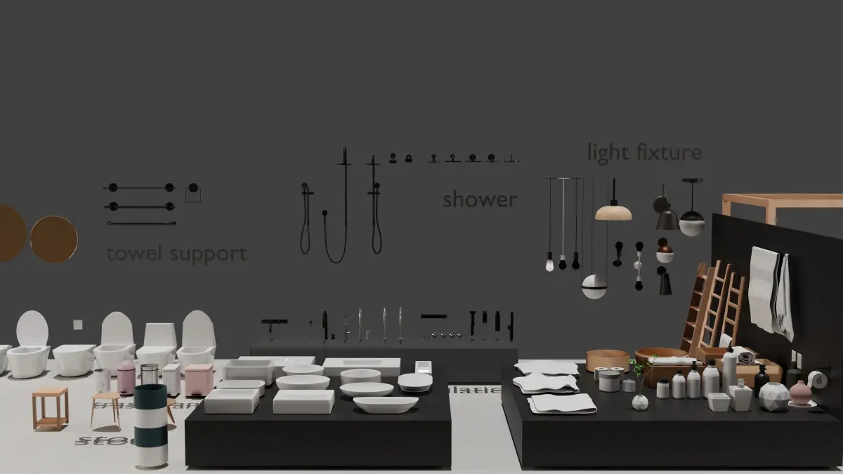 Here is a complete and contemporary realistic bathroom pack set for all your archviz projects.