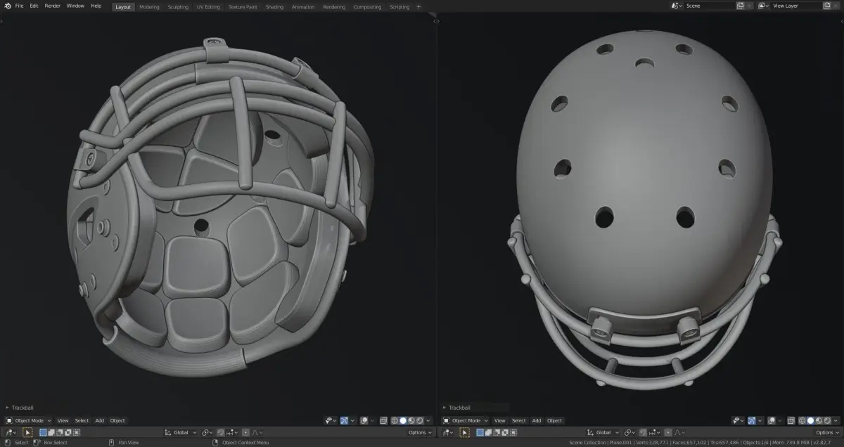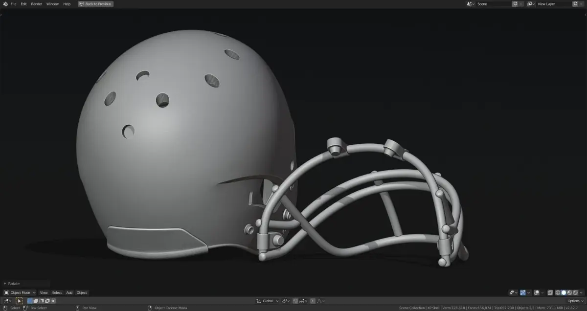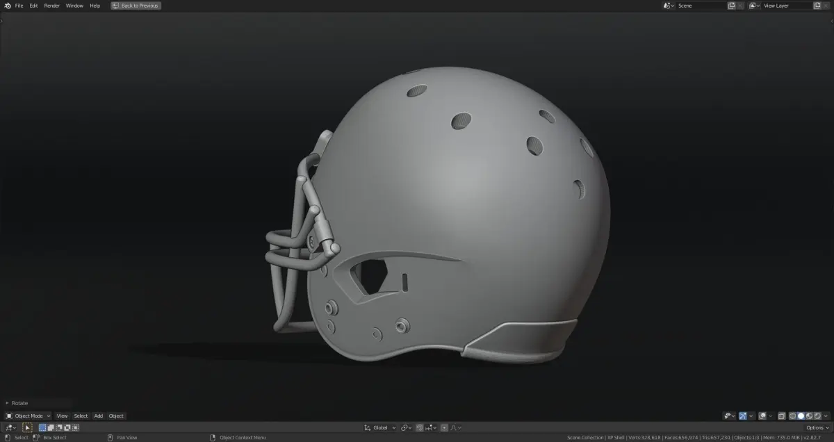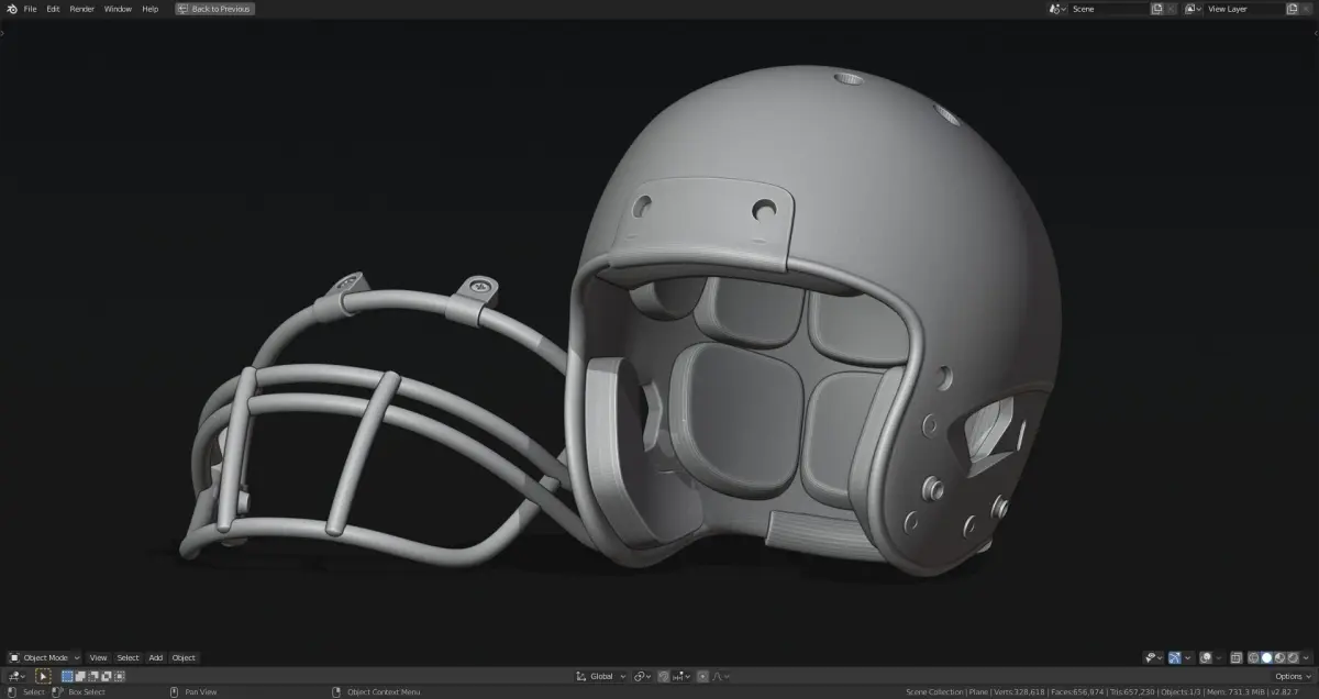 Helmet with one facemask.highly detailed watertight mesh, printable in .stl format.Helmet shell is roughly 2.2 inches tall.