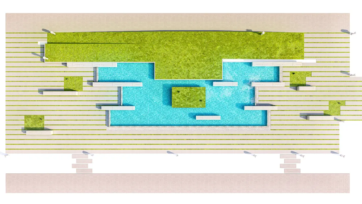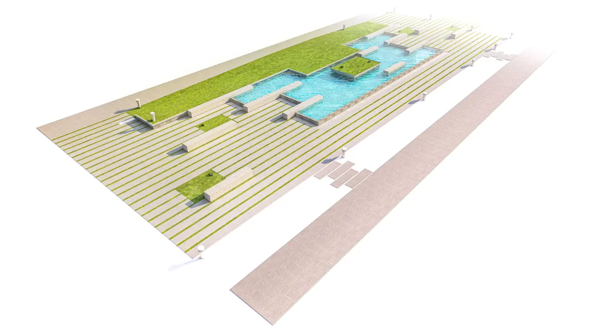 The model is highly versatile and is perfectly suited for use as a background environment, a competition proposal, or as a detail piece in larger architectural visualization, urban planning, or landscape design projects. Its clean, modern aesthetic and realistic scale make it ideal for high-end scene composition and master planning presentations.