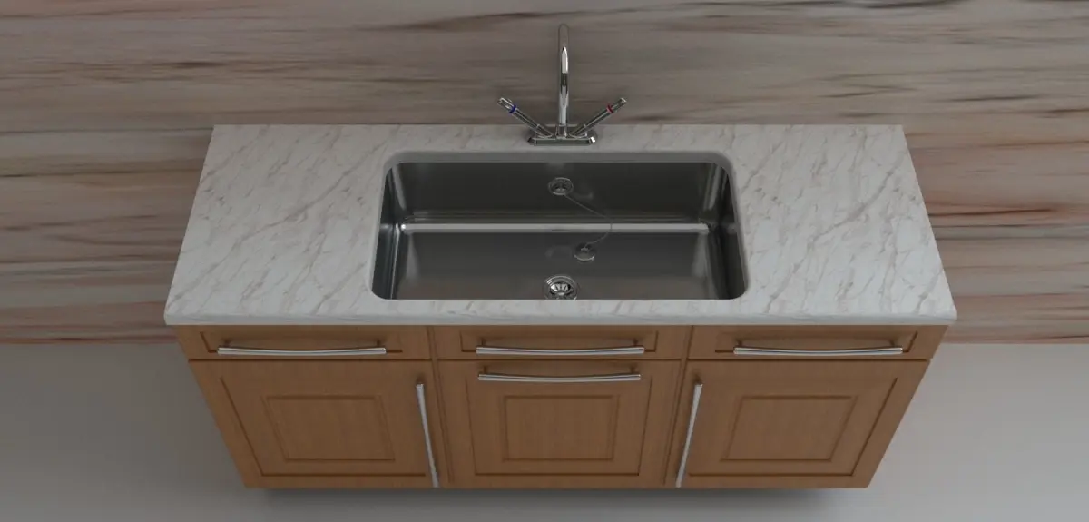 This is my own take on a basic Kitchen sink unit, with one or two nice details. The design features a cherry veneer with a carrarera marble top & chrome handles. I will be adding some other free stuff in the coming weeks.