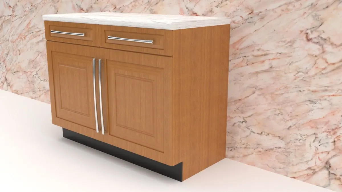 This is my own take on a basic two door kitchen unit, with one or two nice details. The design features a cherry veneer with a carrarera marble top & chrome handles. It compliments the Kitchen Sink and single cupboard units that I have created. You can use them together to make a layout.