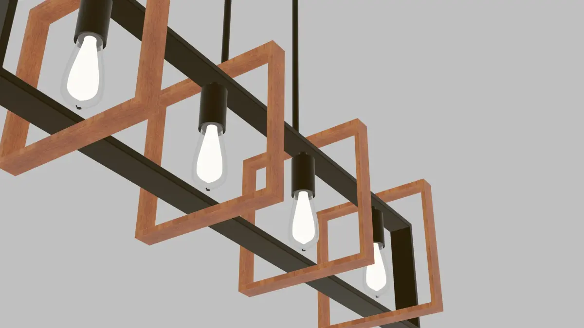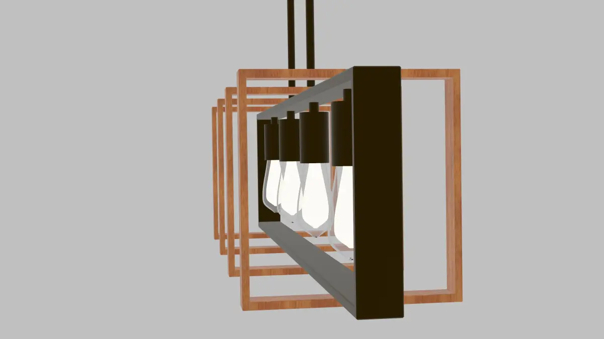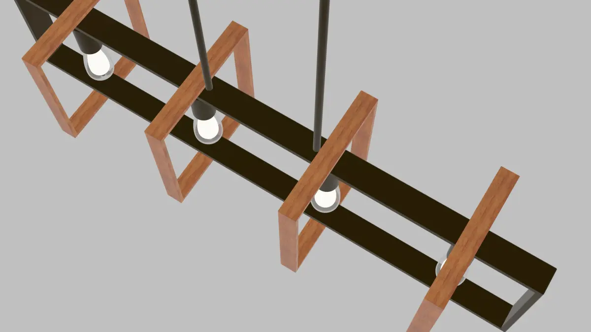 A wood and metal light fixture that fits into any kitchen scene.